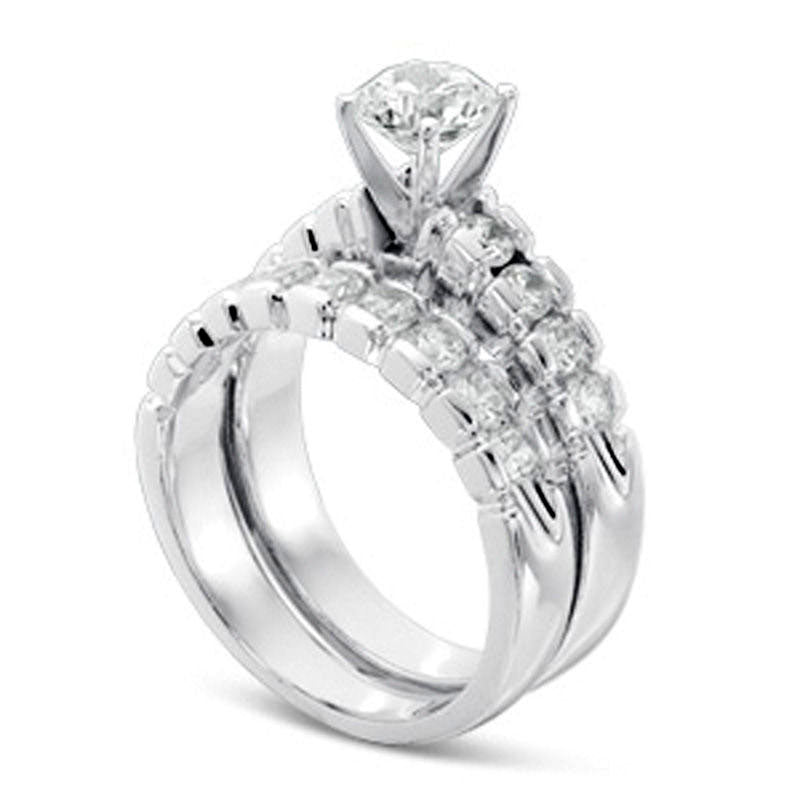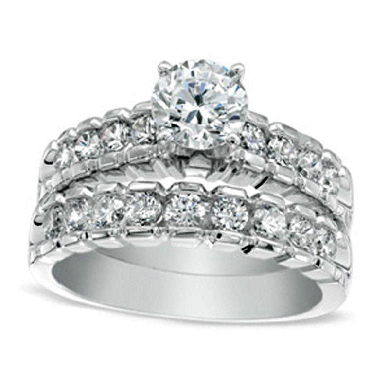 2.0 CT. T.W. Natural Diamond Bridal Engagement Ring Set in Solid 14K White Gold