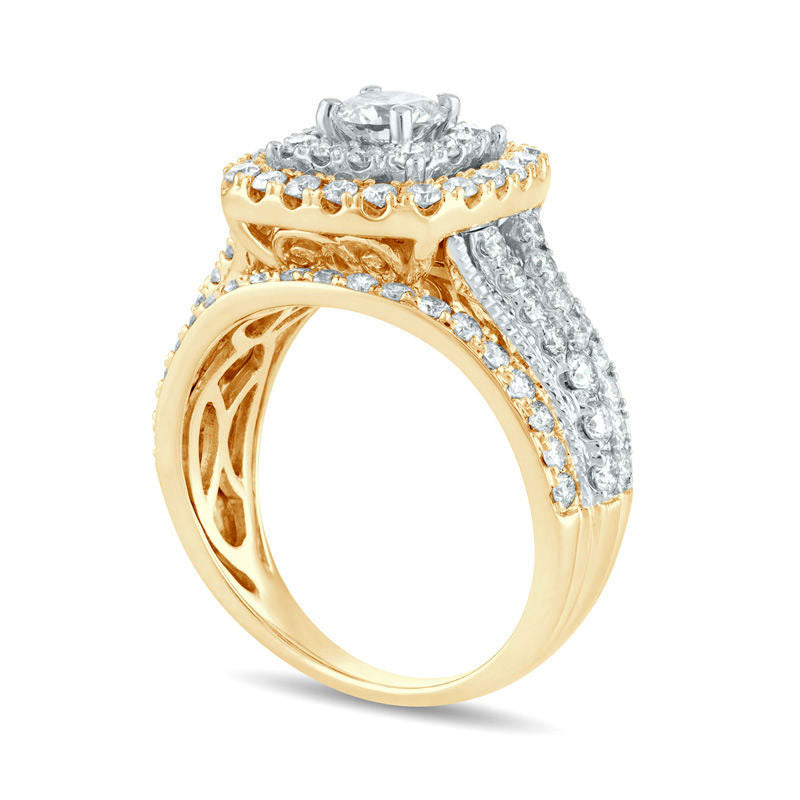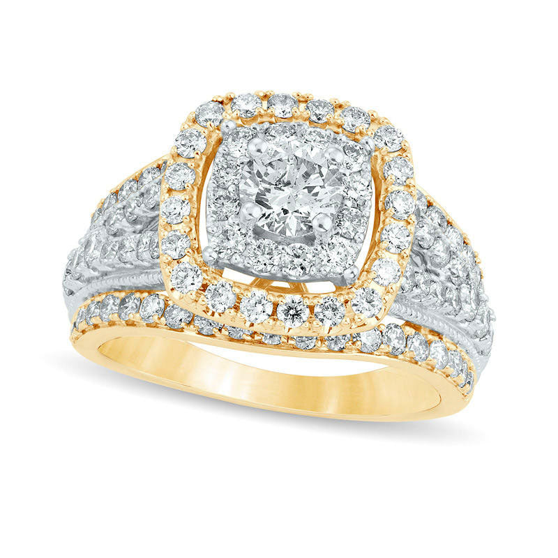 2.0 CT. T.W. Natural Diamond Double Cushion Frame Multi-Row Antique Vintage-Style Engagement Ring in Solid 14K Gold