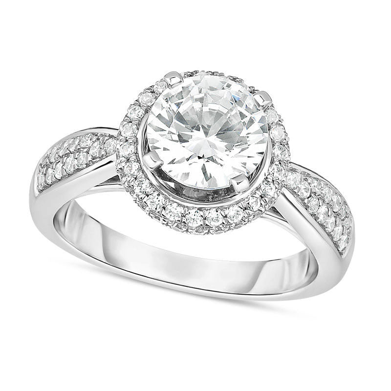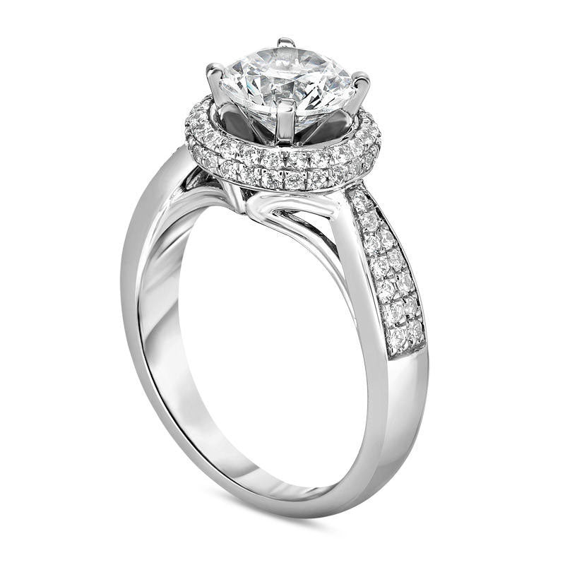 Presenting a stunning diamond engagement ring that will leave her awe-inspired. Exquisitely crafted in 14K white gold, this mesmerizing ring features a breathtaking 1-1/2 ct. diamond center stone embraced by a doubled frame of smaller diamonds, creating a radiant sparkle from all angles. The ring's shank is adorned with more diamonds, beautifully accentuating its style quotient. Sporting 2 cts. t.w. of diamonds and a shining polished finish, this engagement ring is a symbol of elegance that she'll love to flaunt forever.
