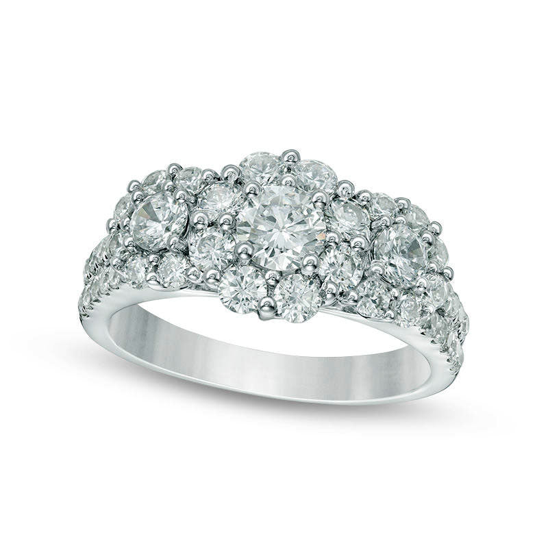 2.0 CT. T.W. Natural Diamond Frame Three Stone Engagement Ring in Solid 14K White Gold