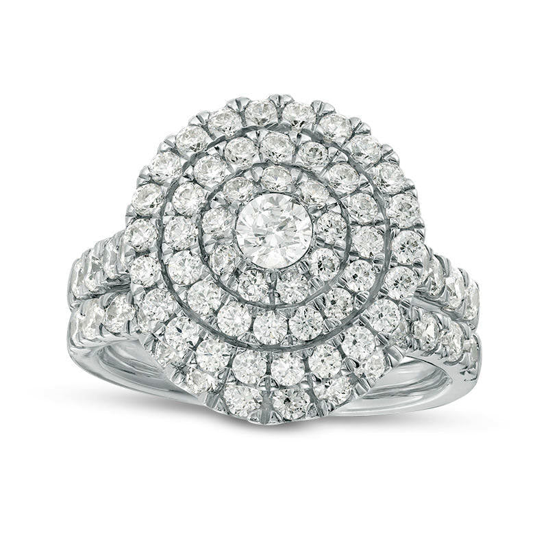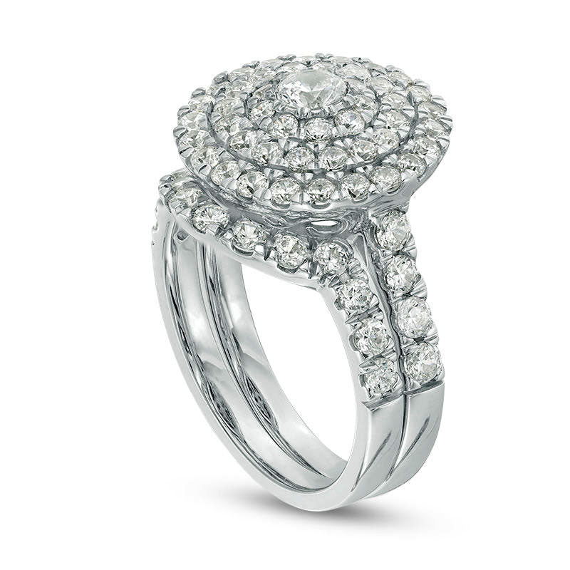 2.0 CT. T.W. Natural Diamond Triple Frame Bridal Engagement Ring Set in Solid 10K White Gold