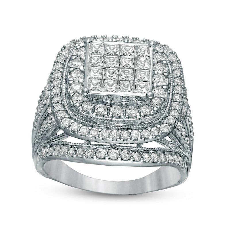 This stunning engagement ring, featuring a beautifully designed 2 CT. T.W. Princess-Cut Composite Diamond Double Cushion Frame Multi-Row, is perfect for those seeking to make an unforgettable proposal. Its elegant...