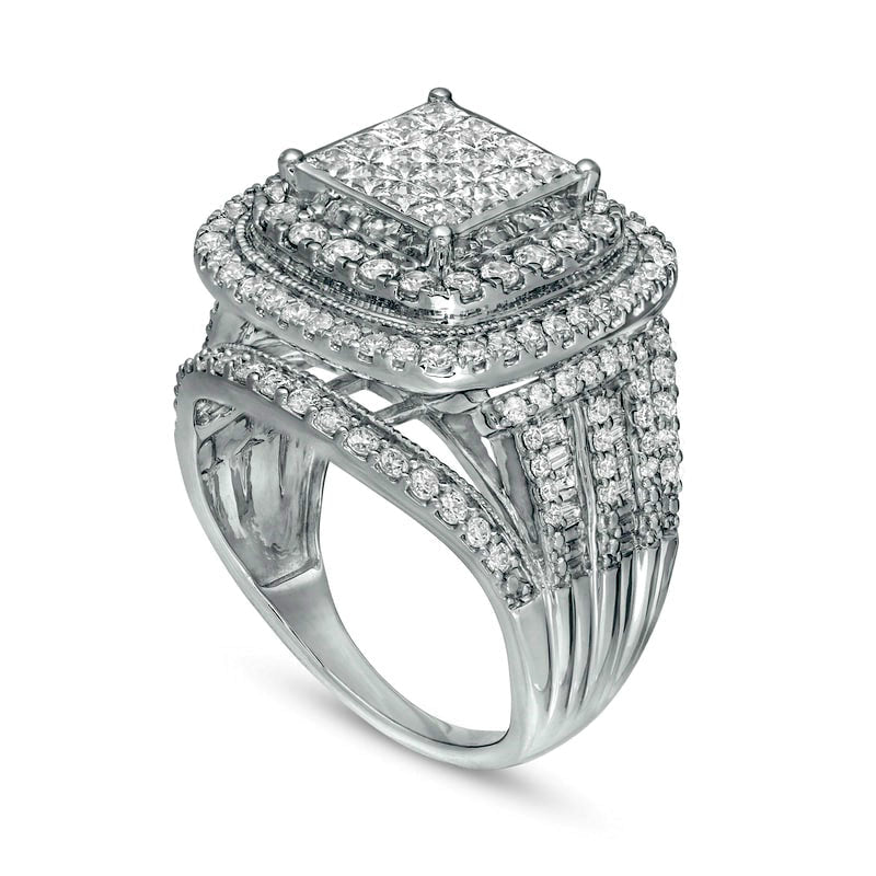 2.0 CT. T.W. Princess-Cut Composite Natural Diamond Double Cushion Frame Multi-Row Engagement Ring in Solid 14K White Gold