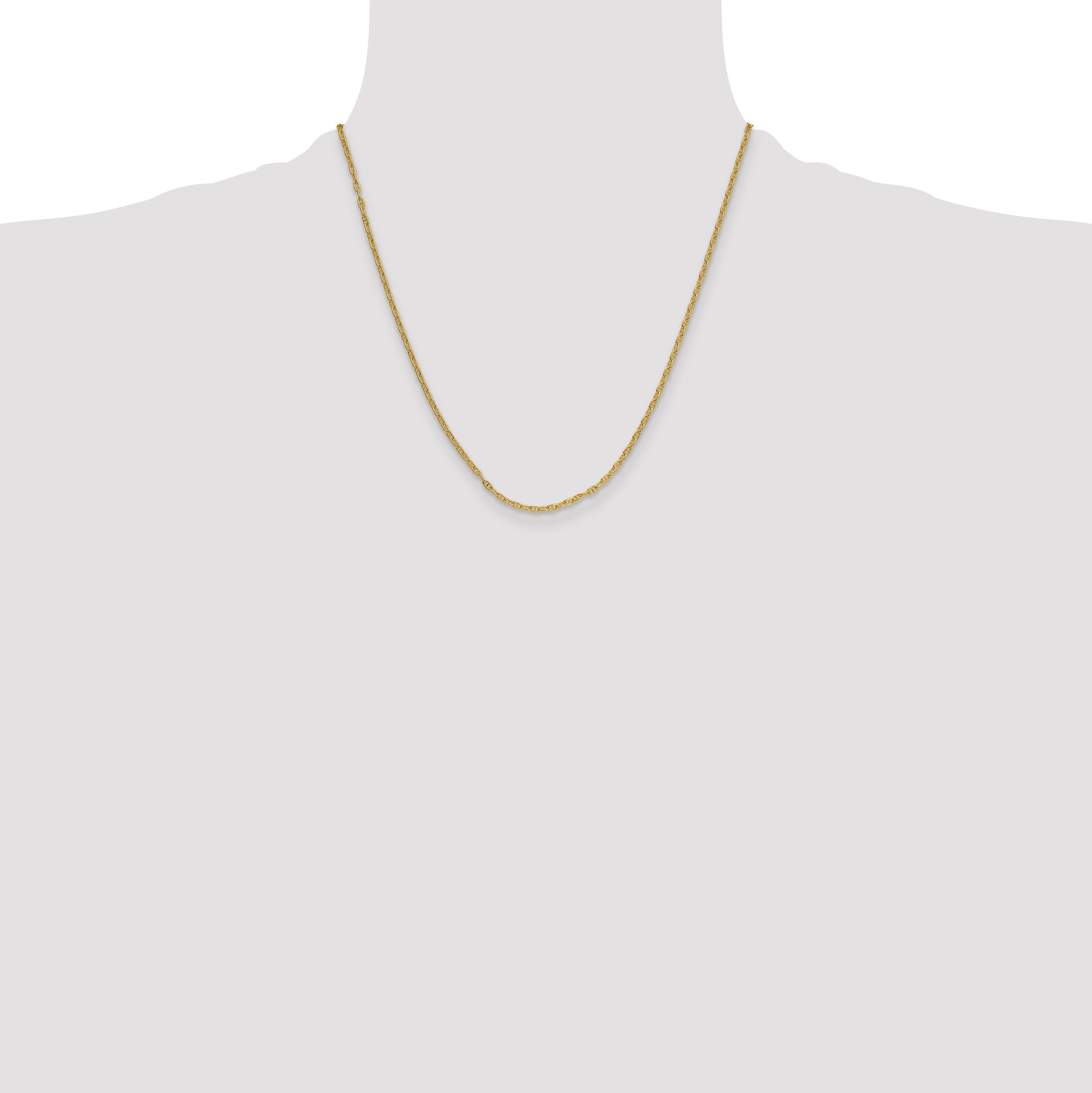 Elevate your style with the 20-Inch 14K 2.35mm Mariners Link Chain. Crafted from 14K yellow gold, this classic chain is both bold and timeless. Its 20-inch length offers versatility for layering or adding a pendant. The 2.35mm width provides a sturdy yet elegant look that suits any occasion. Perfect for adding a touch of sophistication to your ensemble, the Mariners Link Chain combines durability with a softly gleaming finish. Experience the luxury of gold, embodying both elegance and strength, in this exquisite Mariners Link Chain.