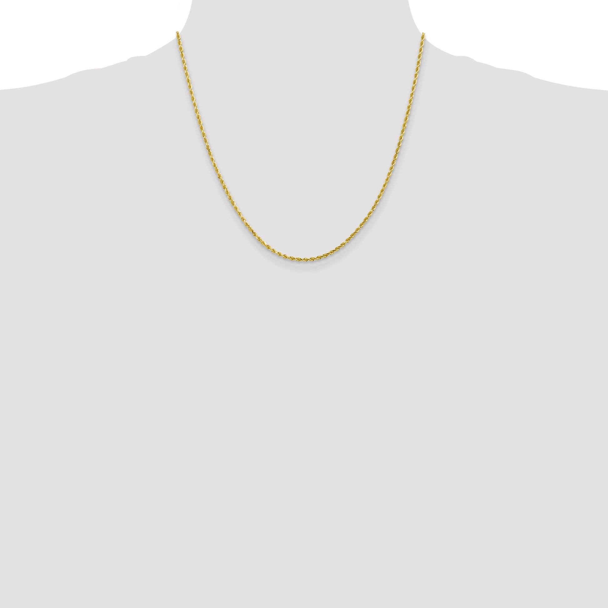 Introducing the 20-Inch 10K 2.25mm Diamond-Cut Rope Chain, a perfect blend of elegance and durability. Made from polished 10K yellow gold, this rope chain is diamond-cut for extra shine. Measuring 20 inches in length and 2.25mm in width, it features a sturdy lobster clasp. The chain’s solid, extruded construction ensures lasting quality, backed by a lifetime guarantee. Designed for all, its texture adds a sophisticated touch to any attire. Elevate your style with the 20-Inch 10K 2.25mm Diamond-Cut Rope Chain, an essential piece for any jewelry collection.