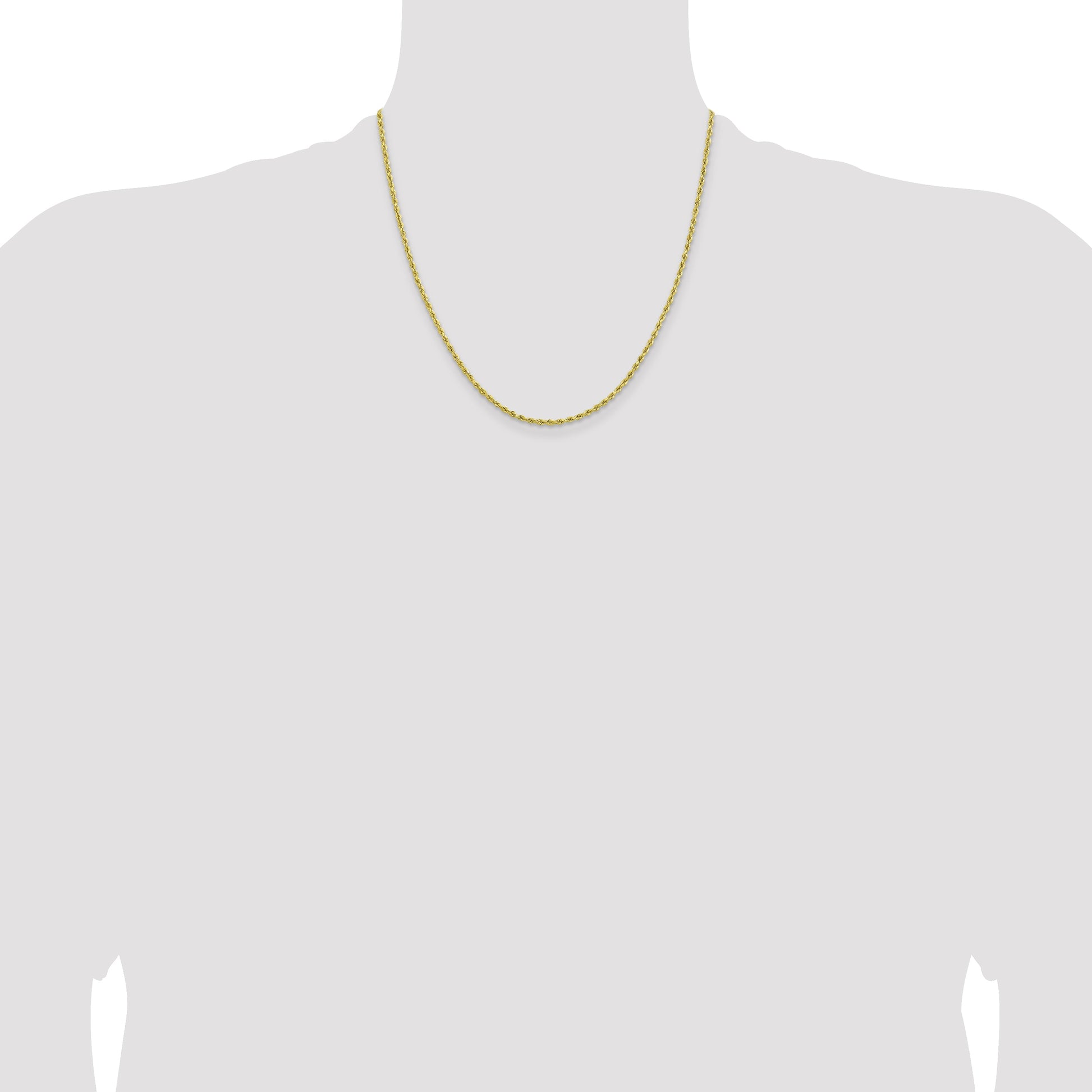 The 20 Inch 10K 2mm Lightweight D/C Rope With Lobster Clasp Chain shines with elegance. Crafted from 10K yellow gold, this 20-inch necklace boasts a 2mm diamond-cut rope design. Its lobster clasp ensures secure wear. Ideal for layering or pairing with a pendant, this versatile piece adds a touch of class to any outfit. Elevate your jewelry collection with the 20 Inch 10K 2mm Lightweight D/C Rope With Lobster Clasp Chain.