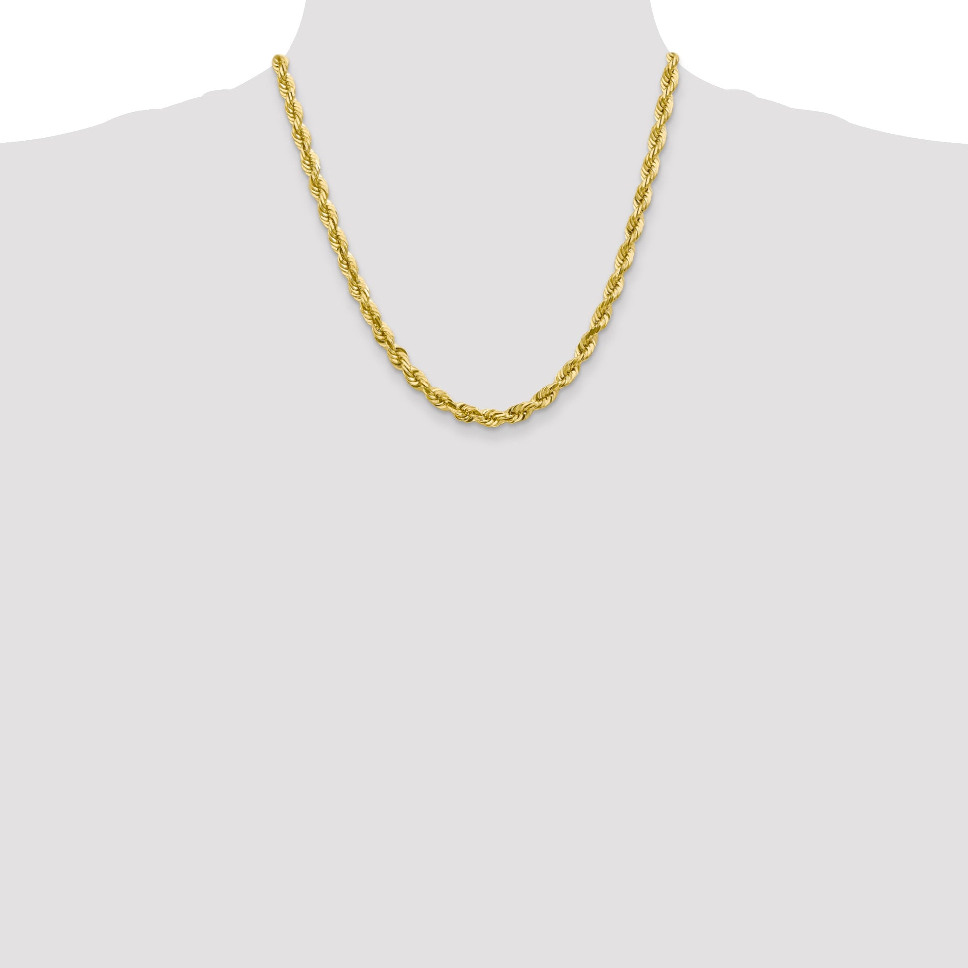 The 20 Inch 10K 5.5mm Diamond-Cut Rope Chain offers timeless elegance. Crafted from 10K yellow gold, this polished rope chain is both sturdy and stunning. Measuring 20 inches in length, the diamond-cut texture adds a touch of sparkle that catches the eye. Its 5.5mm width provides a bold yet refined look, while the lobster clasp ensures secure wear. Perfect for any occasion, this versatile piece elevates any outfit. Discover lasting beauty with the 20 Inch 10K 5.5mm Diamond-Cut Rope Chain.