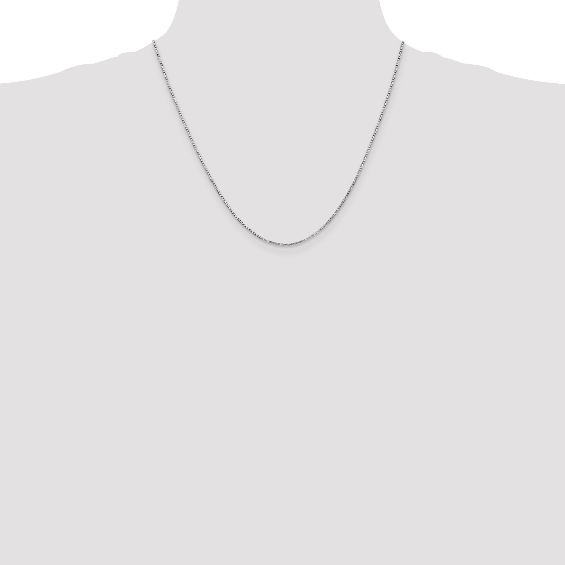Discover elegance with the 20 Inch 10K White Gold 1.25mm Box Chain. Crafted from 10K white gold, this polished chain gleams with a beautiful rhodium plating. Its 1.25mm width and solid box design ensure durability and timeless style. The 20-inch length makes it a versatile piece, perfect for layering or wearing alone. A secure lobster clasp adds to its reliability. This chain was expertly crafted using die-struck and extruded techniques, making it a superb addition to any fine jewelry collection. Elevate your look with the 20 Inch 10K White Gold 1.25mm Box Chain.