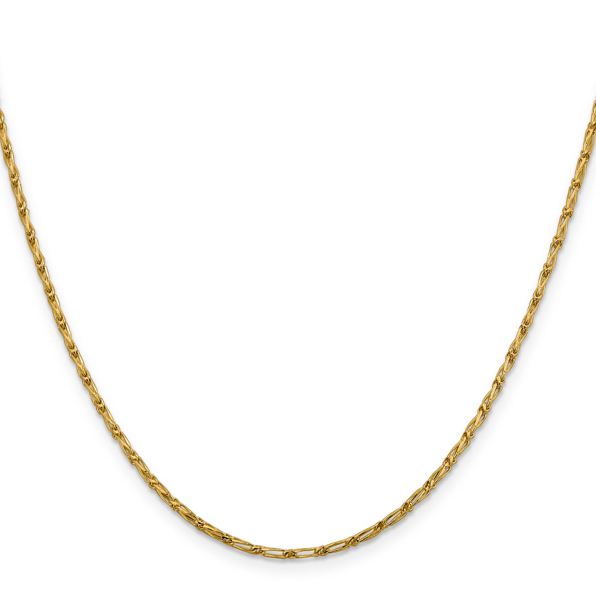 The 20 Inch 14K 1.6mm D/C Long Link Franco Chain epitomizes elegance and craftsmanship in fine jewelry. Made from polished 14K gold, this solid chain boasts a distinctive diamond-cut texture that catches the light beautifully. At 20 inches in length and 1.6mm in width, it's an ideal accessory for any look, offering both versatility and style. The fancy lobster clasp ensures a secure fit and durability. Experience the timeless allure of the 20 Inch 14K 1.6mm D/C Long Link Franco Chain, backed by a lifetime guarantee for your peace of mind.