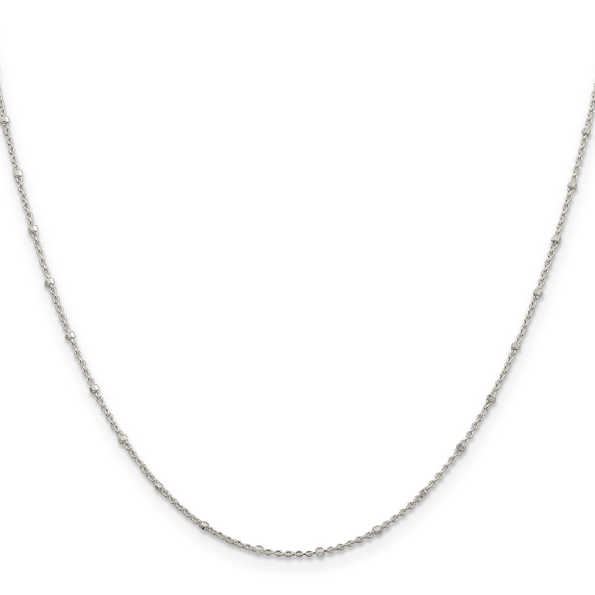 The 20 Inch Sterling Silver 1.25mm Rolo With Beads Chain brings a touch of elegance to any outfit. Crafted from polished 925 sterling silver, it's both durable and stylish. At 20 inches long, this chain fits perfectly around the neck, offering a classic rolo design with delicate beads for added flair. The 1.25mm width ensures a subtle, refined look that’s perfect for everyday wear. The spring ring clasp secures it effortlessly, while its anti-tarnish coating keeps it looking bright longer. Make this exquisite Sterling Silver chain your go-to for a taste of sophisticated style.
