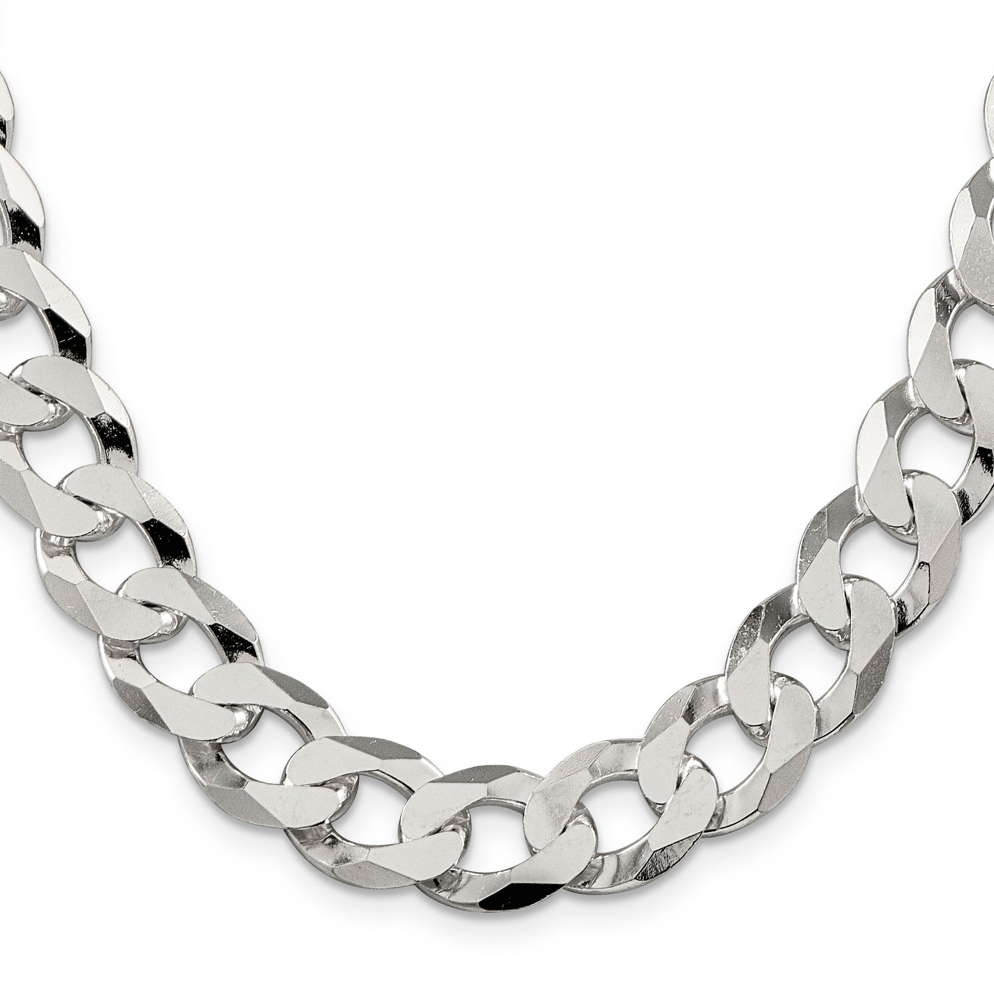 Introducing the 20 Inch Sterling Silver 13mm Beveled Curb Chain, a stunning accessory for the modern man. Crafted from genuine 925 sterling silver, this polished necklace showcases a bold curb chain design with a 13mm width. The chain's beveled edges add sophistication, making it a standout piece in any jewelry collection. Robust and durable, its solid structure is machine-made, ensuring longevity. The lobster clasp provides secure fastening, while the anti-tarnish coating keeps it looking fresh and clean. Elevate your style today with the 20 Inch Sterling Silver 13mm Beveled Curb Chain.