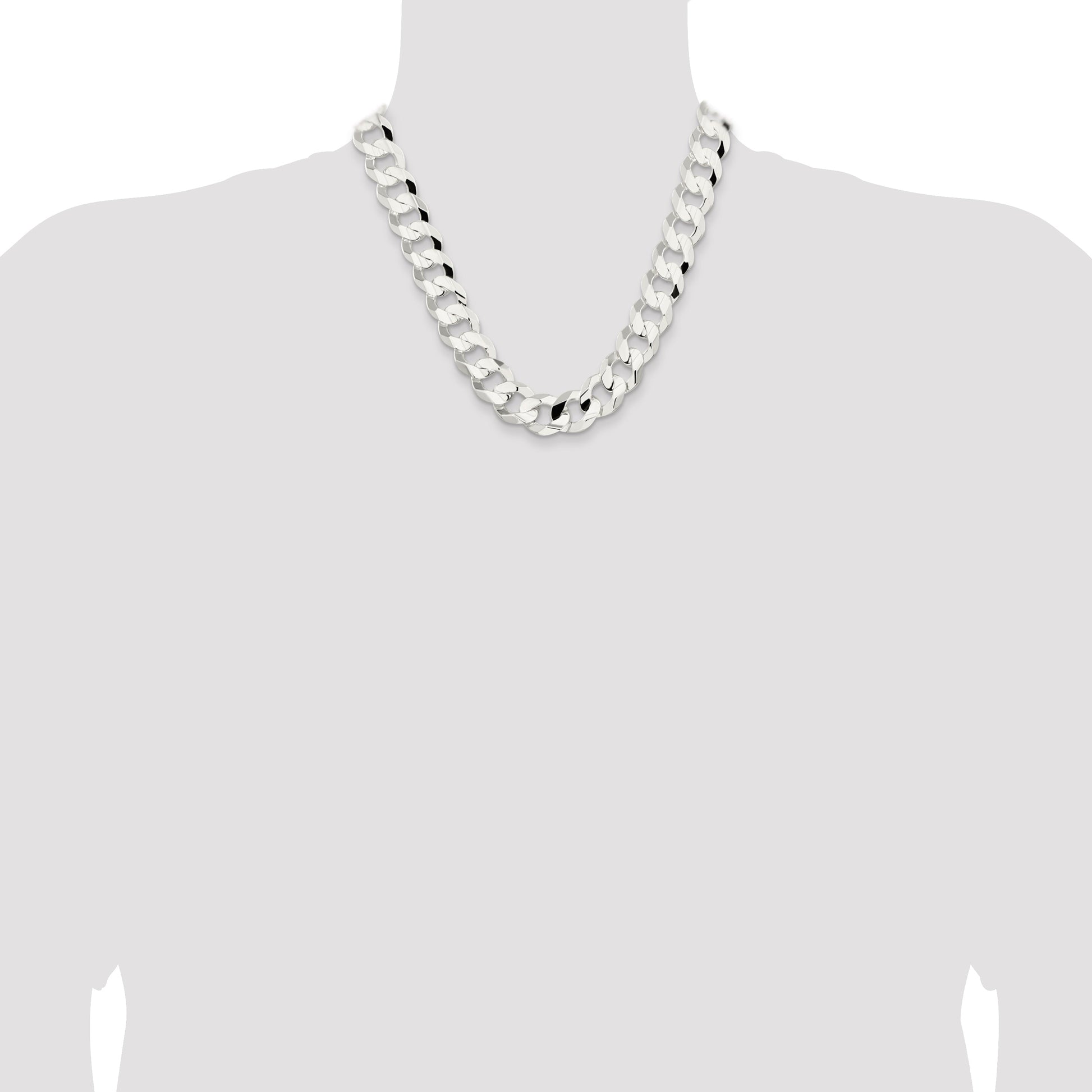 Meet your new go-to accessory: the 20 Inch Sterling Silver 15.75mm Concave Beveled Curb Chain. Crafted from polished 925 sterling silver, this chain offers a stunning shine and an anti-tarnish coating, ensuring long-lasting elegance. With its bold 15.75 mm width and sleek concave profile, it delivers both style and substance. The beveled edges add a touch of sophistication, perfect for any occasion. A secure lobster clasp makes it easy to wear and ensures it stays in place all day. Elevate your jewelry collection with the 20 Inch Sterling Silver 15.75mm Concave Beveled Curb Chain and enjoy timeless style.