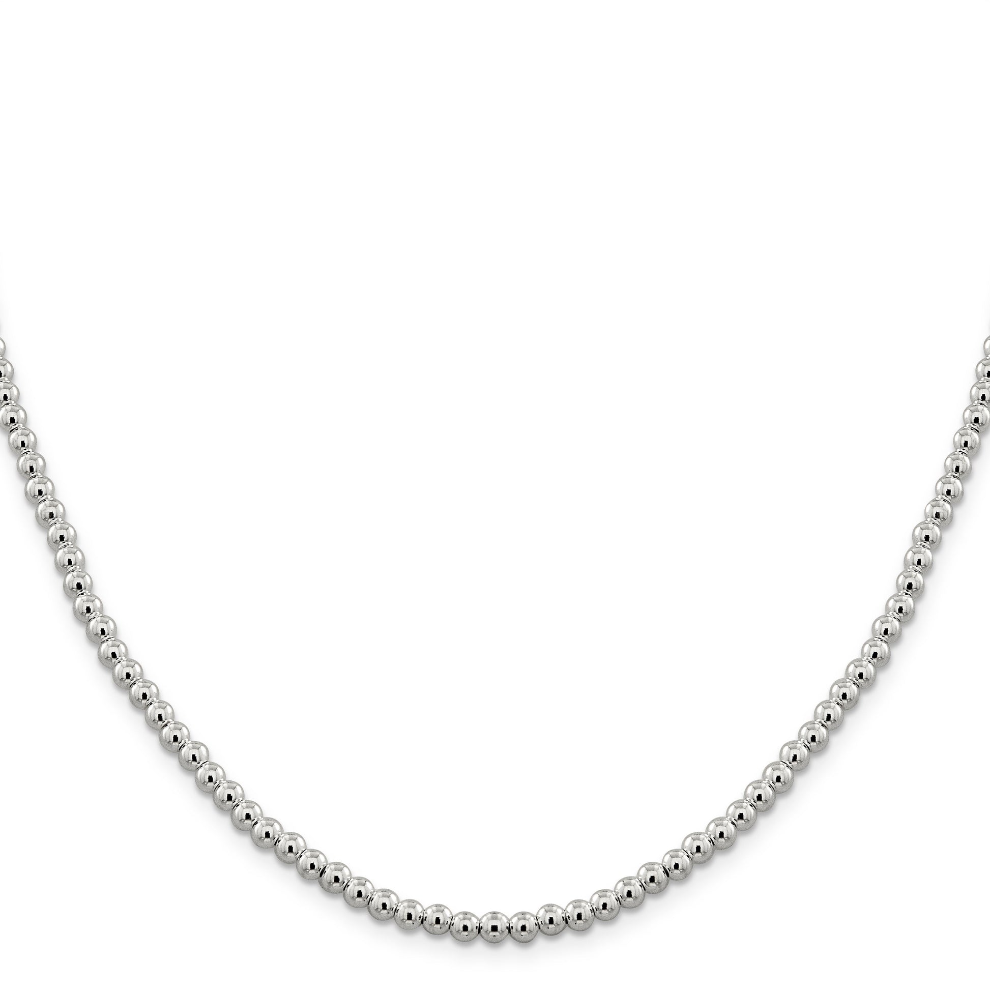 The 20 Inch Sterling Silver 4mm Beads On Box Chain is a striking piece of jewelry that adds elegance to any outfit. Made from 925 sterling silver, this necklace shines with a polished finish. The necklace features a delicate 4mm beaded chain combined with a classic box chain design. Its 20-inch length lies perfectly on the collarbone, offering a chic and refined look. With an anti-tarnish coating ensuring long-lasting shine, it is secured with a sturdy lobster clasp. Ideal for women, each necklace showcases timeless style and excellent craftsmanship. The 20 Inch Sterling Silver 4mm Beads On Box Chain is a must-have for any fine jewelry collection.