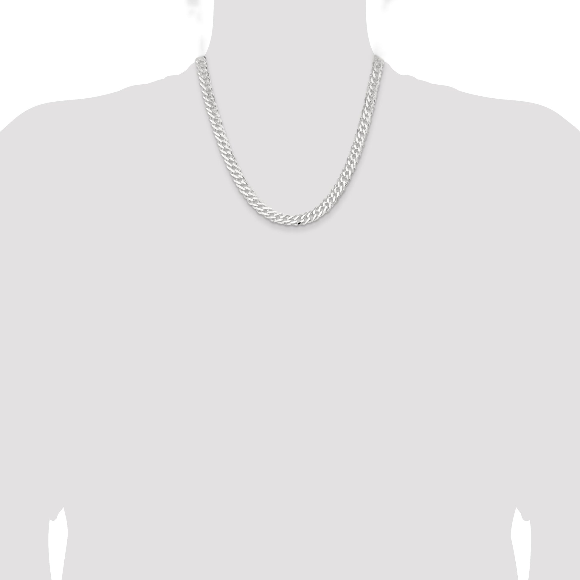 Embrace timeless elegance with the 20 Inch Sterling Silver 7.75mm 6 Side D/C Flat Double Curb Chain. Crafted from 925 sterling silver, this polished necklace gleams with its diamond-cut texture, redefining sophistication in men's jewelry. Its 20-inch length and 7.75mm width ensure a bold yet classy statement piece. The lobster clasp provides a secure fit, and the anti-tarnish finish means this chain remains shiny for years. Ideal for daily wear or special occasions, this curb chain promises both durability and style. Elevate your look with this sterling silver masterpiece today.