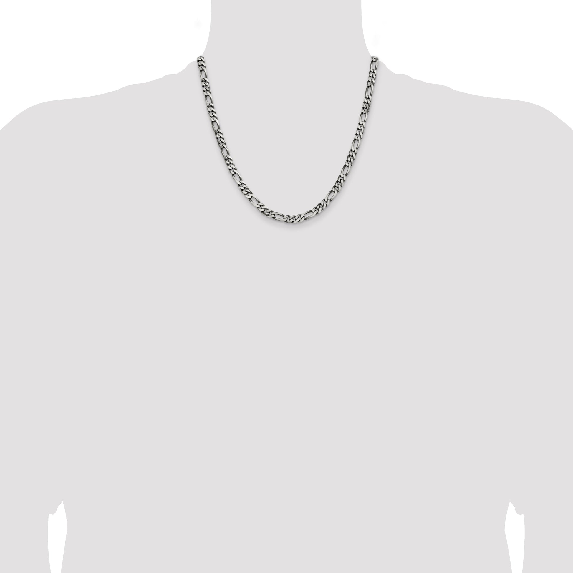 The 20 Inch Sterling Silver Antiqued 5.5mm Figaro Chain combines elegance with timeless design. Crafted from fine 925 sterling silver, this necklace showcases a visually appealing antiqued finish. The Figaro chain style gives it a classic yet fashionable touch that pairs well with any outfit. With a width of 5.5 mm, it offers a bold presence while still remaining lightweight for all-day wear. The lobster clasp ensures a secure fit and easy wearability. Perfect for everyday elegance or special occasions, the 20 Inch Sterling Silver Antiqued Figaro Chain is an essential addition to any jewelry collection.