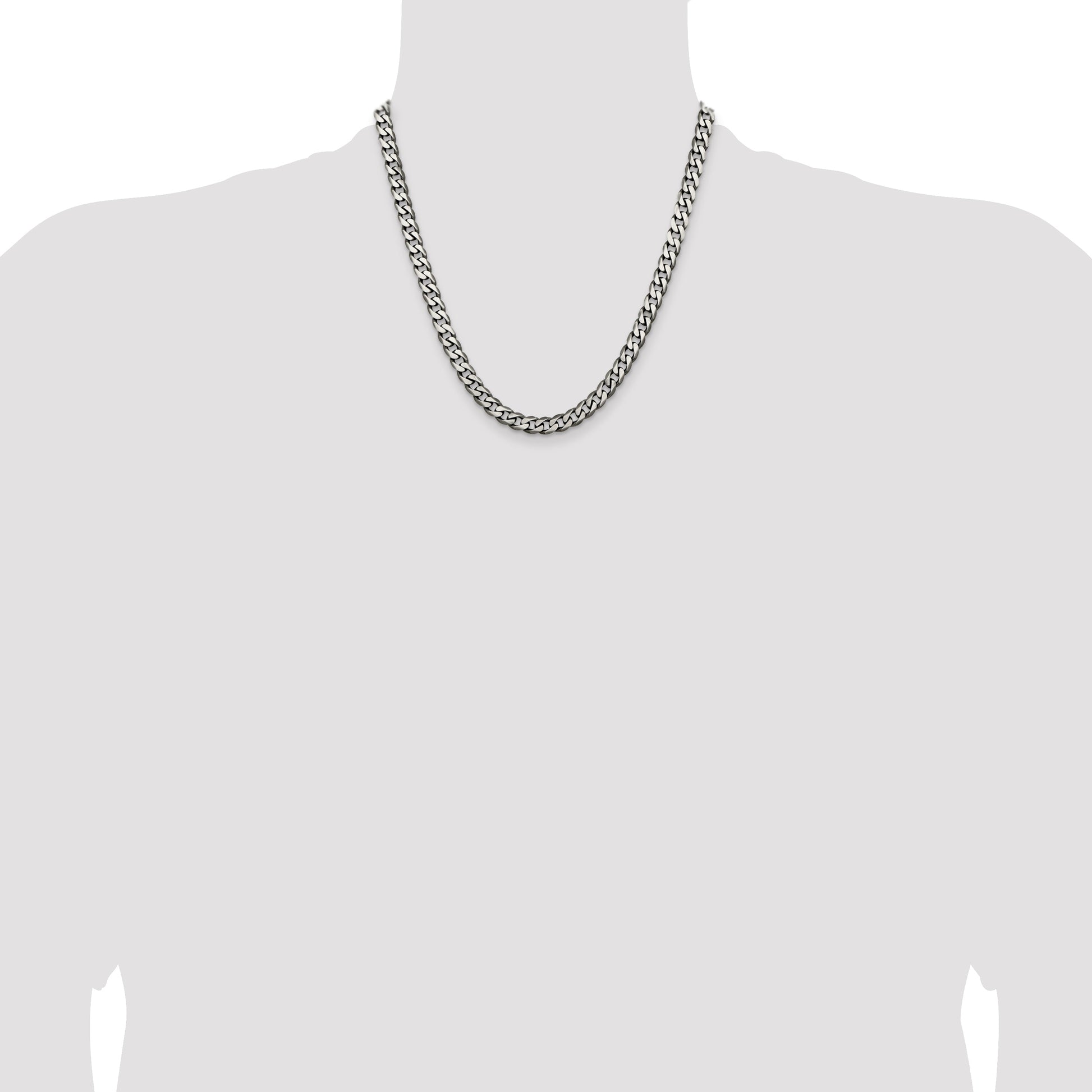 The 20 Inch Sterling Silver Antiqued 6.5mm Curb Chain embodies classic elegance and versatility. Crafted from 925 sterling silver, it features an antiqued finish that adds timeless charm. Measuring 20 inches long and 7mm wide, this curb chain offers a solid and robust feel. It secures with a reliable lobster clasp, ensuring a snug fit for any neckline. Casted to perfection, this unisex necklace suits any style, making it an ideal choice for both casual and formal occasions. Elevate any outfit while showcasing the exquisite craftsmanship of this 20 Inch Sterling Silver Antiqued 6.5mm Curb Chain.