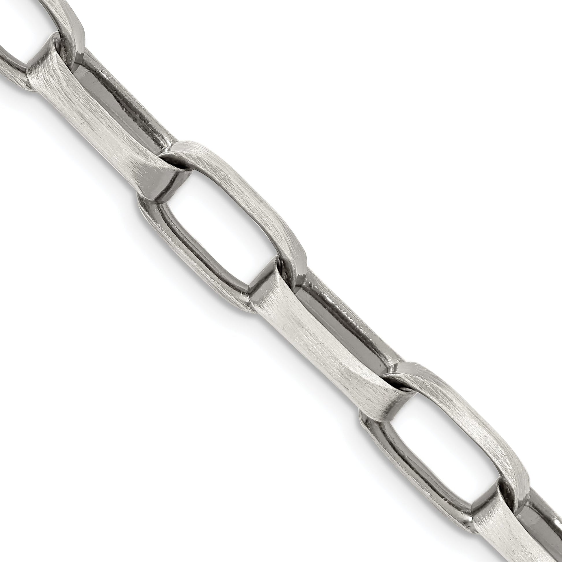 The 20 Inch Sterling Silver Antiqued 8mm Elongated Open Link Chain is a captivating blend of elegance and rugged charm. Crafted from 925 sterling silver, it features a polished and antiqued finish that enhances its timeless appeal. This open link chain measures 20 inches, making it a versatile piece. At 8mm wide, it creates a bold statement suitable for everyday wear or special occasions. The sturdy lobster clasp ensures secure closure. Designed for men, this solid chain offers durability and style in a single piece. Elevate your jewelry collection with this standout necklace.