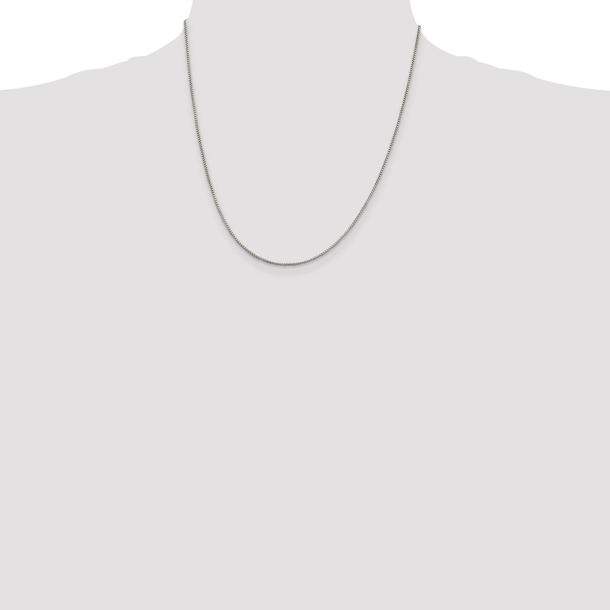 The 20 Inch Sterling Silver Rhodium-Plated 1.25mm Round Box Chain exudes timeless elegance. Crafted from 925 sterling silver with a polished finish, this necklace shines with a sleek silver tone. The solid round box chain design is 1.25mm in width, offering both subtlety and durability. Its 20-inch length drapes perfectly, making it a versatile piece for any occasion. Equipped with a reliable spring ring clasp, this chain promises secure and comfortable wear. Elevate any outfit with the 20 Inch Sterling Silver Rhodium-Plated 1.25mm Round Box Chain for a classic, sophisticated look.