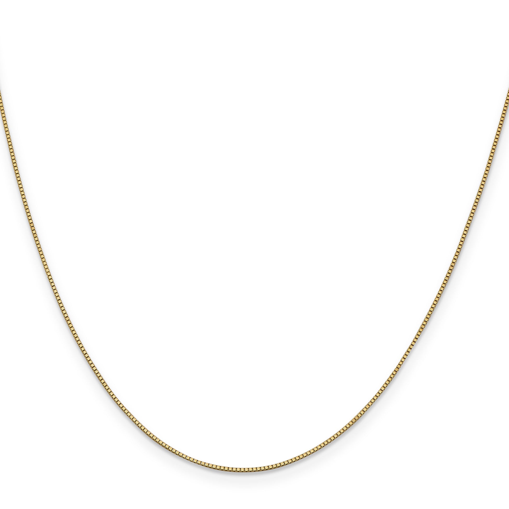 The 22 Inch 14K .7mm Box With Lobster Clasp Chain is a classic addition to any jewelry collection. Crafted from 14K polished yellow gold, this 22-inch chain has a sleek and modern box design. Its 0.7 mm width makes it a delicate yet durable choice, perfect for daily wear. The lobster clasp ensures a secure fit, while the nickel-free material is gentle on the skin. Made by precise machine methods, this necklace comes with a lifetime guarantee. Elevate your style with the 22 Inch 14K .7mm Box With Lobster Clasp Chain, a timeless piece made to last.