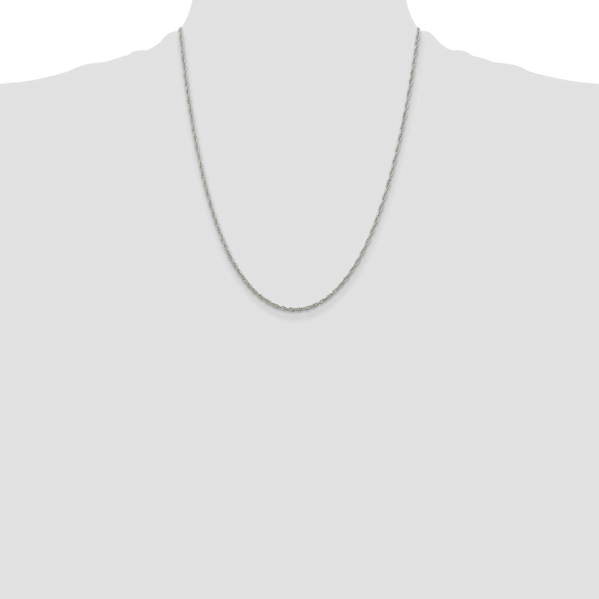 Introducing the 22 Inch Sterling Silver Loose Rope Chain, a stunning piece of jewelry designed to elevate your style. Crafted with polished sterling silver of 925 purity, this chain boasts a solid 1.95mm thickness that exudes elegance. The 22-inch length provides a classic drape, while a 4-inch extender offers flexibility for a perfect fit. Its durable lobster clasp ensures secure wear. Ideal for pairing with pendants, this necklace shines with a sleek white finish, making it a must-have accessory. Make a statement with the 22 Inch Sterling Silver Loose Rope Chain.