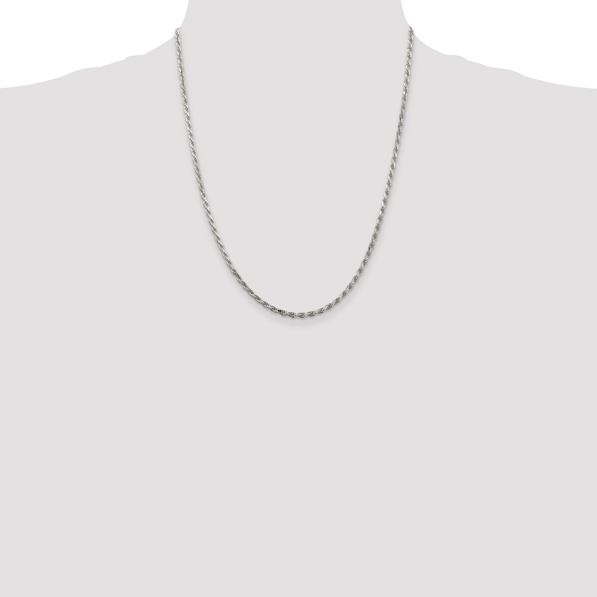The 22 Inch Sterling Silver 2.5mm Diamond-Cut Rope Chain with a 4-inch extender is a timeless piece for any jewelry lover. Crafted from 925 sterling silver, this chain boasts a polished finish and an intricate diamond-cut texture, revealing a radiant sheen that catches the light beautifully. Its 2.5mm width and solid construction ensure durability, while the anti-tarnish coating maintains its brilliance over time. Featuring a secure lobster clasp, this versatile necklace suits both casual and dressy occasions. Experience the classic elegance of the 22 Inch Sterling Silver 2.5mm Diamond-Cut Rope Chain, perfect for any woman's collection.