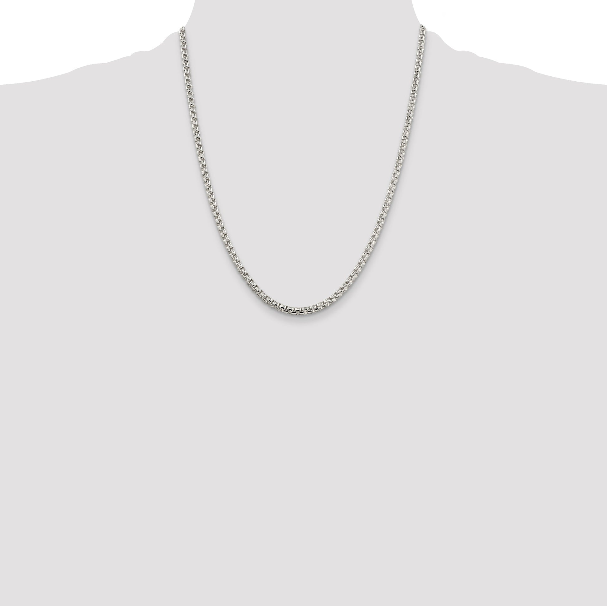 The 22 Inch Sterling Silver 3.6mm Round Box Chain is a timeless piece for anyone's jewelry collection. Crafted with 925 sterling silver, it boasts a polished finish that shines beautifully. The chain offers a classic box design with a width of 3.6 millimeters, making it a solid and sturdy choice. Its 22-inch length is ideal for most necklines, and the secure lobster clasp ensures it stays in place comfortably. The anti-tarnish coating keeps it looking fresh and brilliant. Elevate your style with the elegant 22 Inch Sterling Silver 3.6mm Round Box Chain.