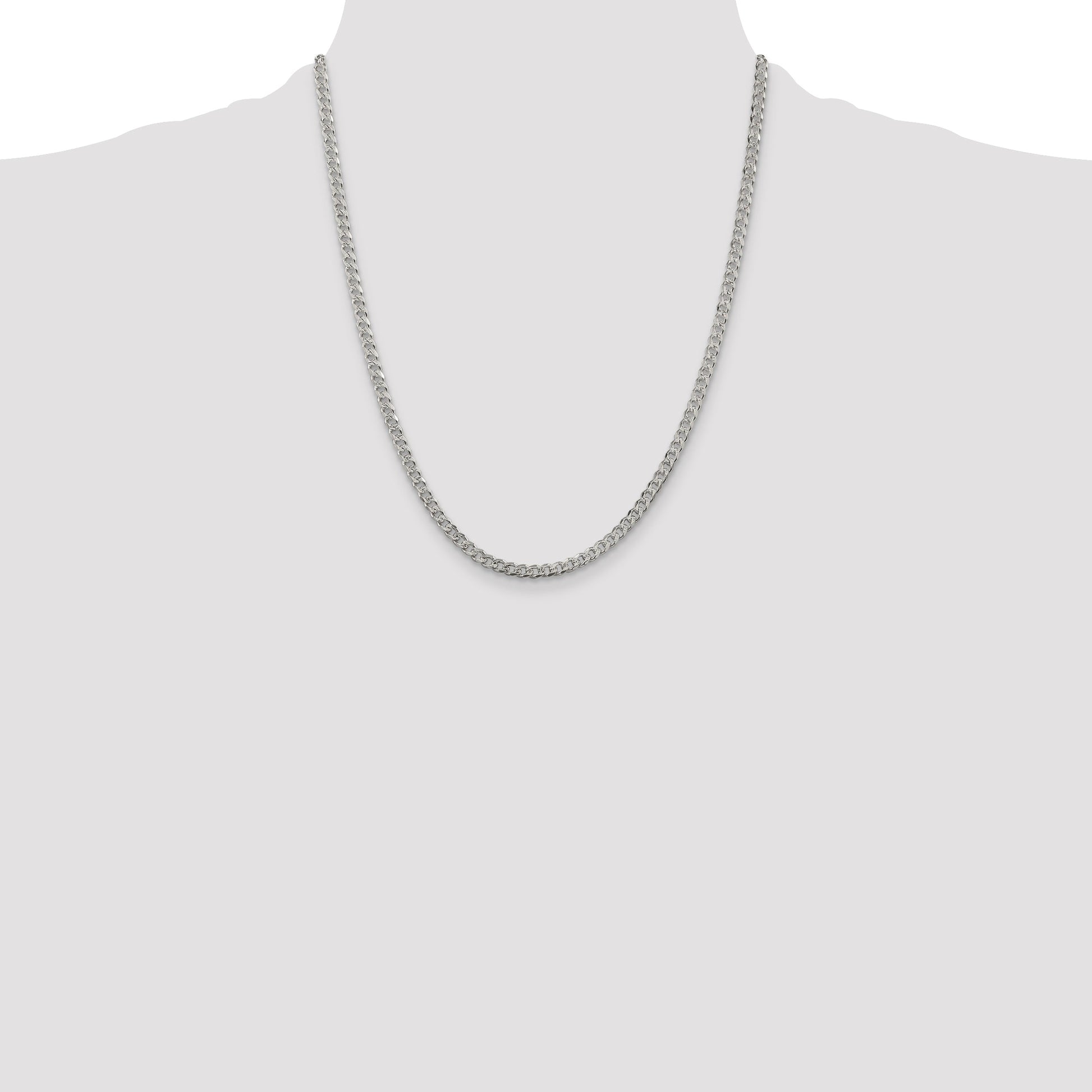 The 22-inch Sterling Silver 3.8mm Pavé Curb Chain dazzles with sophistication and elegance. Crafted meticulously from 925 sterling silver, this polished beauty gleams radiantly. At its heart, this chain boasts a robust curb design, ensuring it drapes gracefully around your neck. Each link reflects light brilliantly, enhanced further by a durable anti-tarnish coating to keep it looking pristine. Its 4mm width offers a perfect balance between subtlety and statement-making. The secure lobster clasp ensures it stays in place, offering comfort and style for women. The 22-inch Sterling Silver 3.8mm Pavé Curb Chain is truly a timeless piece for any jewelry collection.
