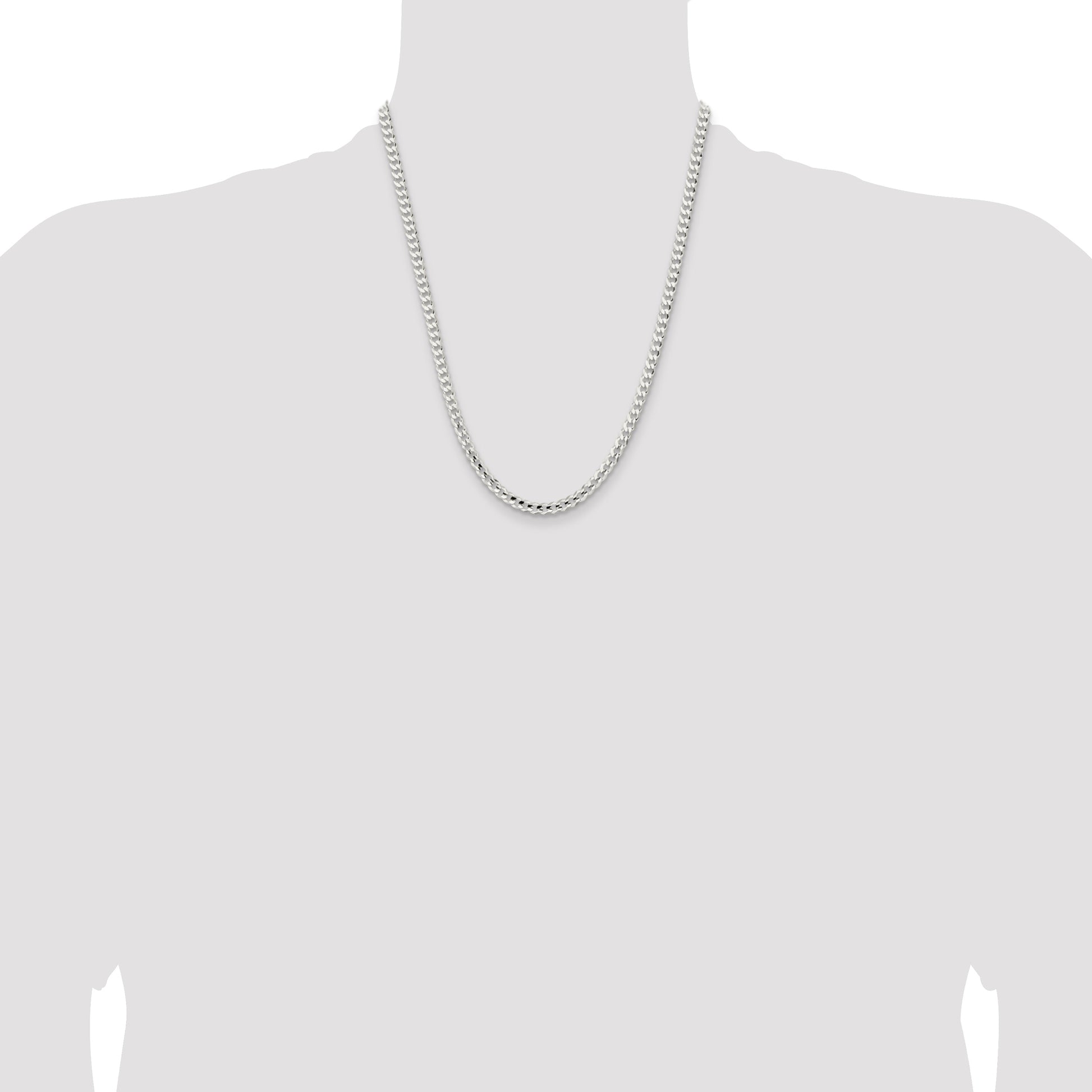 Elevate your style with the 22 Inch Sterling Silver 4.5mm Concave Beveled Curb Chain. Crafted from high-quality 925 sterling silver, this chain masterpiece features a polished finish that shimmers with every movement. The curb chain design is robust yet elegant, measuring 4.5mm in width, ensuring it stands out. A convenient lobster clasp secures the chain, offering both functionality and style. Its anti-tarnish coating guarantees lasting shine and durability. Suitable for any gender, the sleek white hue complements any outfit. The 22 Inch Sterling Silver 4.5mm Concave Beveled Curb Chain is the ideal statement piece for those who appreciate timeless elegance.