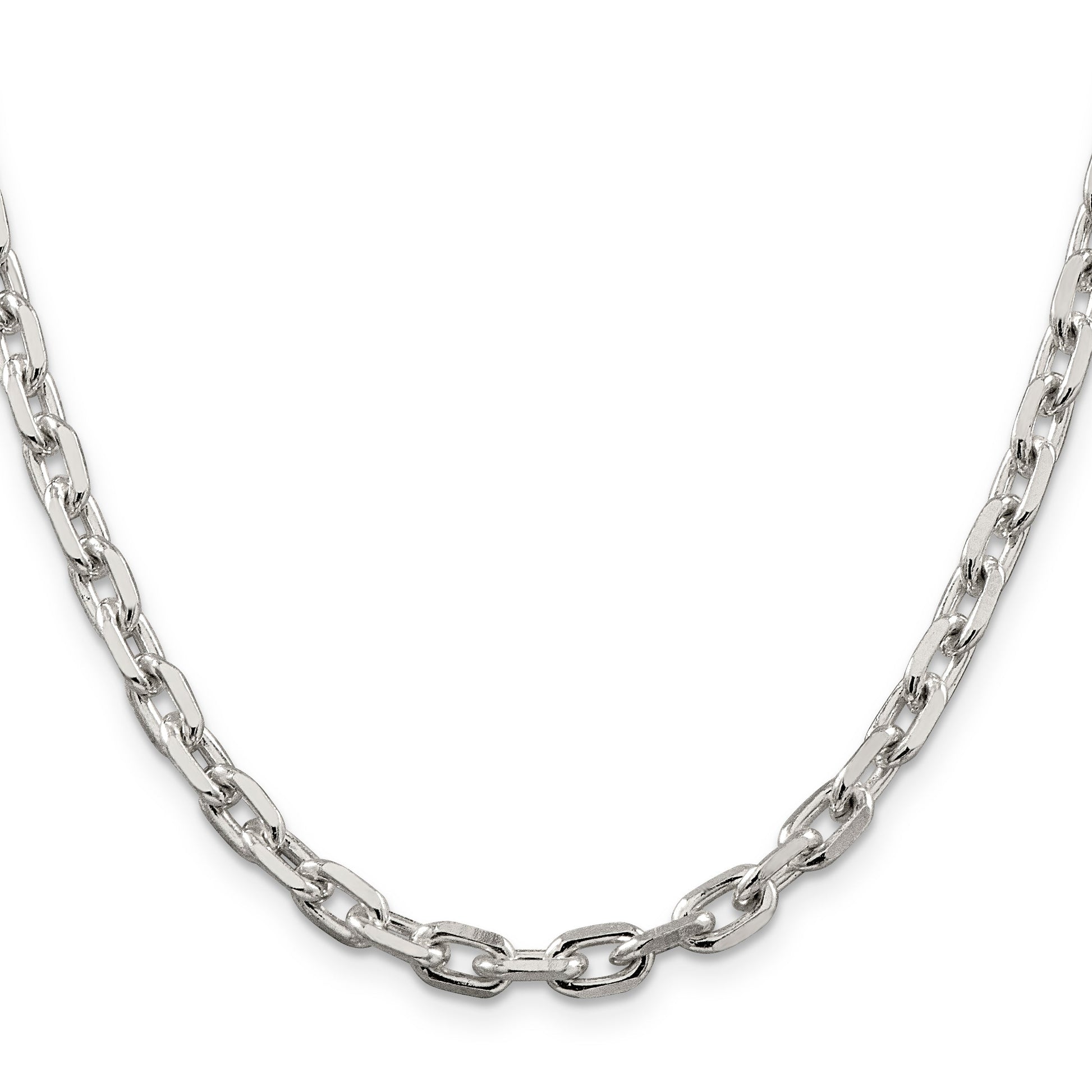 The 22 Inch Sterling Silver 5.4mm Beveled Oval Cable Chain is a must-have for those who appreciate elegance. Crafted with 925 sterling silver, this polished necklace radiates a sophisticated shine. Measuring 22 inches, this chain provides the perfect length for a graceful silhouette. Its 5.4 mm width features a robust lobster clasp, ensuring secure wear. The open link design, complemented by its beveled edges, offers both strength and style. Perfect for any occasion, this women's necklace promises to adorn its wearer with timeless beauty. Elevate your jewelry collection with the 22 Inch Sterling Silver 5.4mm Beveled Oval Cable Chain.