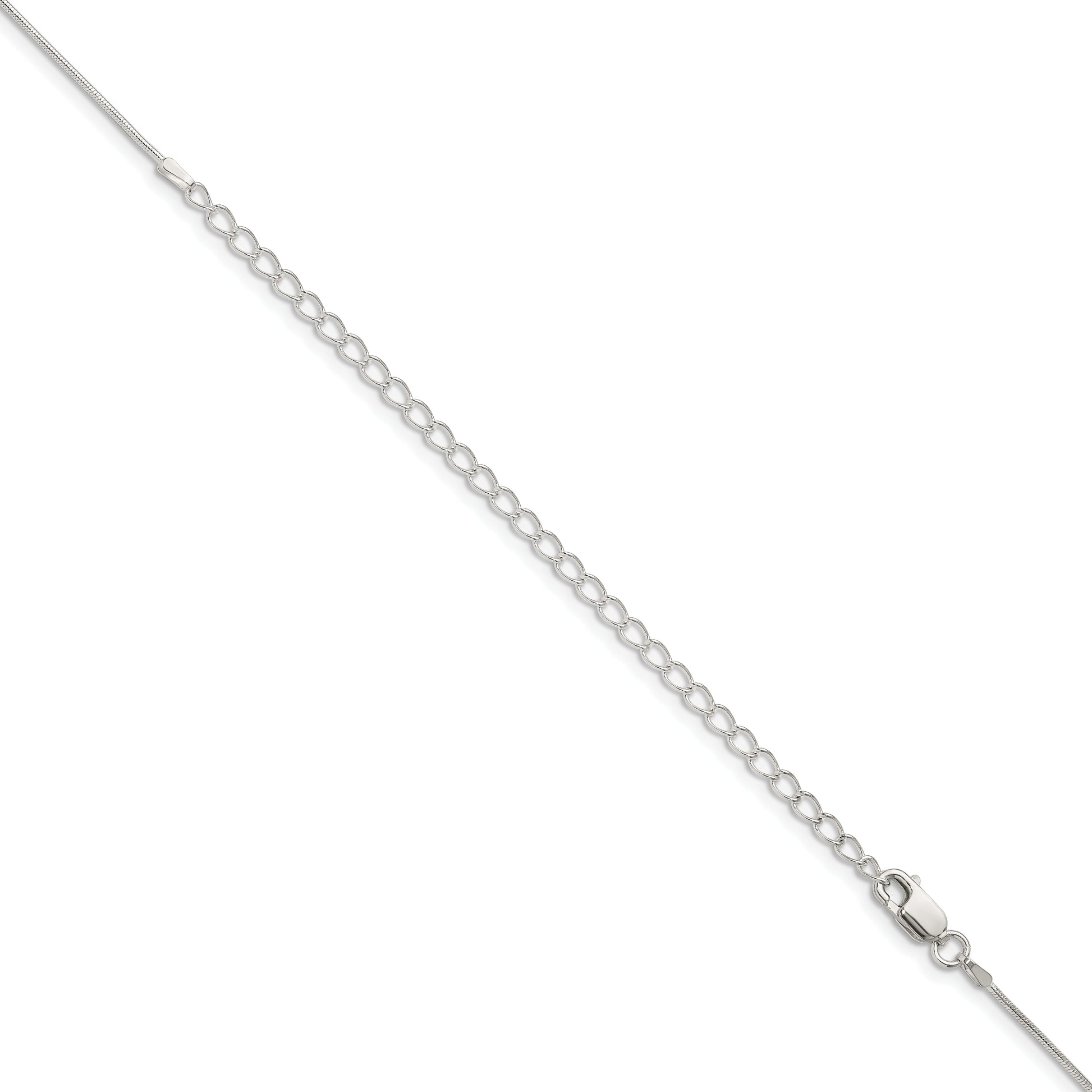 This 22-inch Sterling Silver Snake Chain Necklace brings elegance to any outfit. Crafted from polished 925 sterling silver, this chain adds a touch of shine and sophistication. Its sleek snake design measures 0.8 mm in width, creating a refined look that's perfect for everyday wear. The necklace features a lobster clasp for secure closure and includes a 4-inch extender for versatile styling options. The Sterling Silver Snake Chain Necklace is a must-have for anyone seeking timeless and classic jewelry with a modern twist. Turn heads with this chic, durable piece.