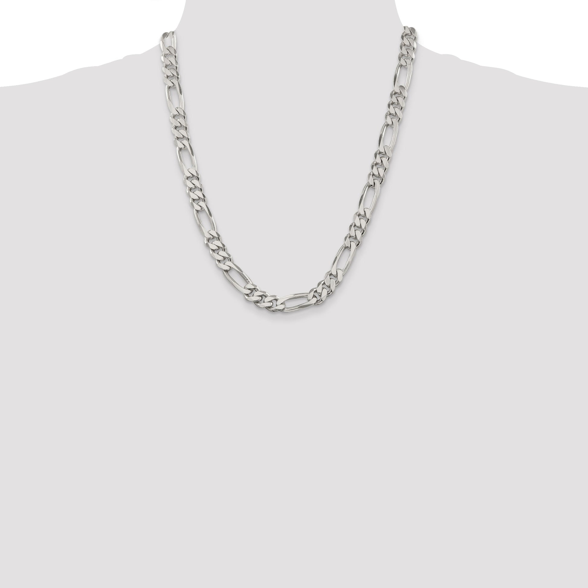 The 22 Inch Sterling Silver 9mm Figaro Chain shines with a timeless allure, perfect for completing any look. Crafted from high-quality 925 sterling silver, this chain offers a polished finish that promises stunning sparkle. Its robust 9mm width and classic Figaro style create a bold statement piece, ideal for everyday wear or special occasions. The anti-tarnish coating ensures lasting brilliance, while the strong lobster clasp guarantees a secure fit. Casted with precision, this solid chain exhibits both durability and elegance. Elevate your jewelry collection with the 22 Inch Sterling Silver 9mm Figaro Chain, a staple in men's fashion.