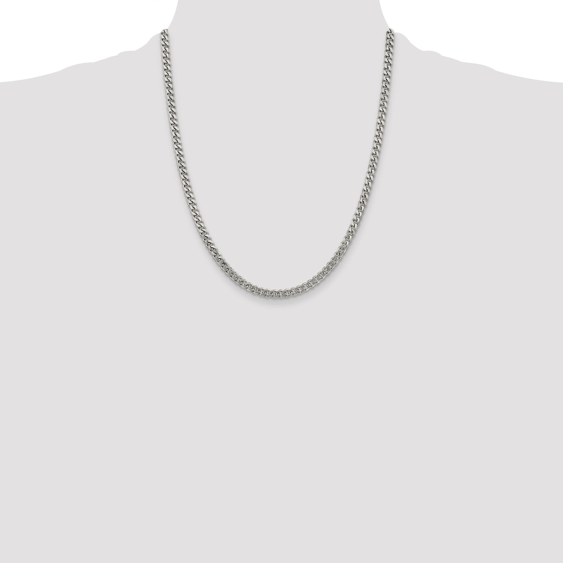 Introducing the 22-Inch Sterling Silver Rhodium-Plated 4.5mm Curb Chain, a stunning piece designed for those who love elegance. Crafted from polished 925 sterling silver, this chain gleams with a silver-plated tone. Perfectly measuring 22 inches, it drapes beautifully around your neck. The curb chain type, known for its durability, ensures long-lasting style. A secure lobster clasp provides a handsome finish, adding convenience to wear. Machine-made with precision, this solid piece suits any style or occasion, making it a must-have accessory. Elevate your jewelry collection with the 22-Inch Sterling Silver Rhodium-Plated 4.5mm Curb Chain.