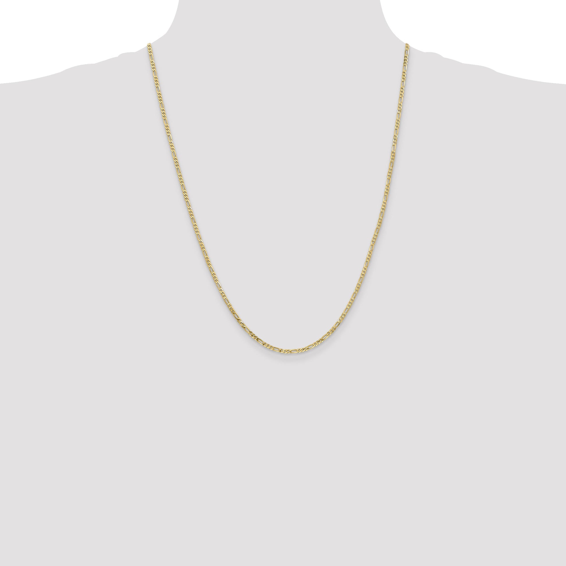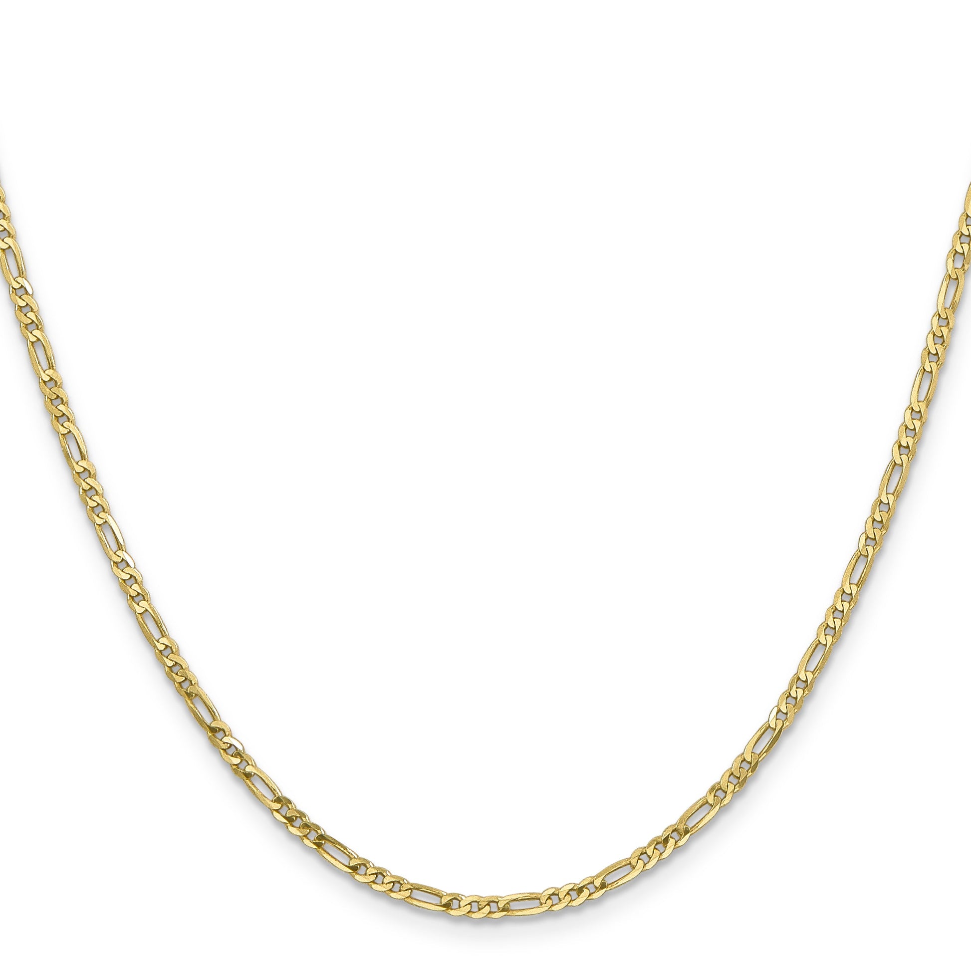 The 24 Inch 10K 2.2mm Flat Figaro Chain offers a timeless touch to your style. Crafted from 10K yellow gold, this chain shines with a polished finish. Its 2.2mm width and 24-inch length ensure a comfortable and stylish fit, ideal for any occasion. The solid, machine-made design guarantees durability, while the lobster clasp provides secure wear. The flat Figaro chain style makes it a versatile accessory, perfect for layering or wearing solo. Elevate your jewelry collection with the 24 Inch 10K 2.2mm Flat Figaro Chain.