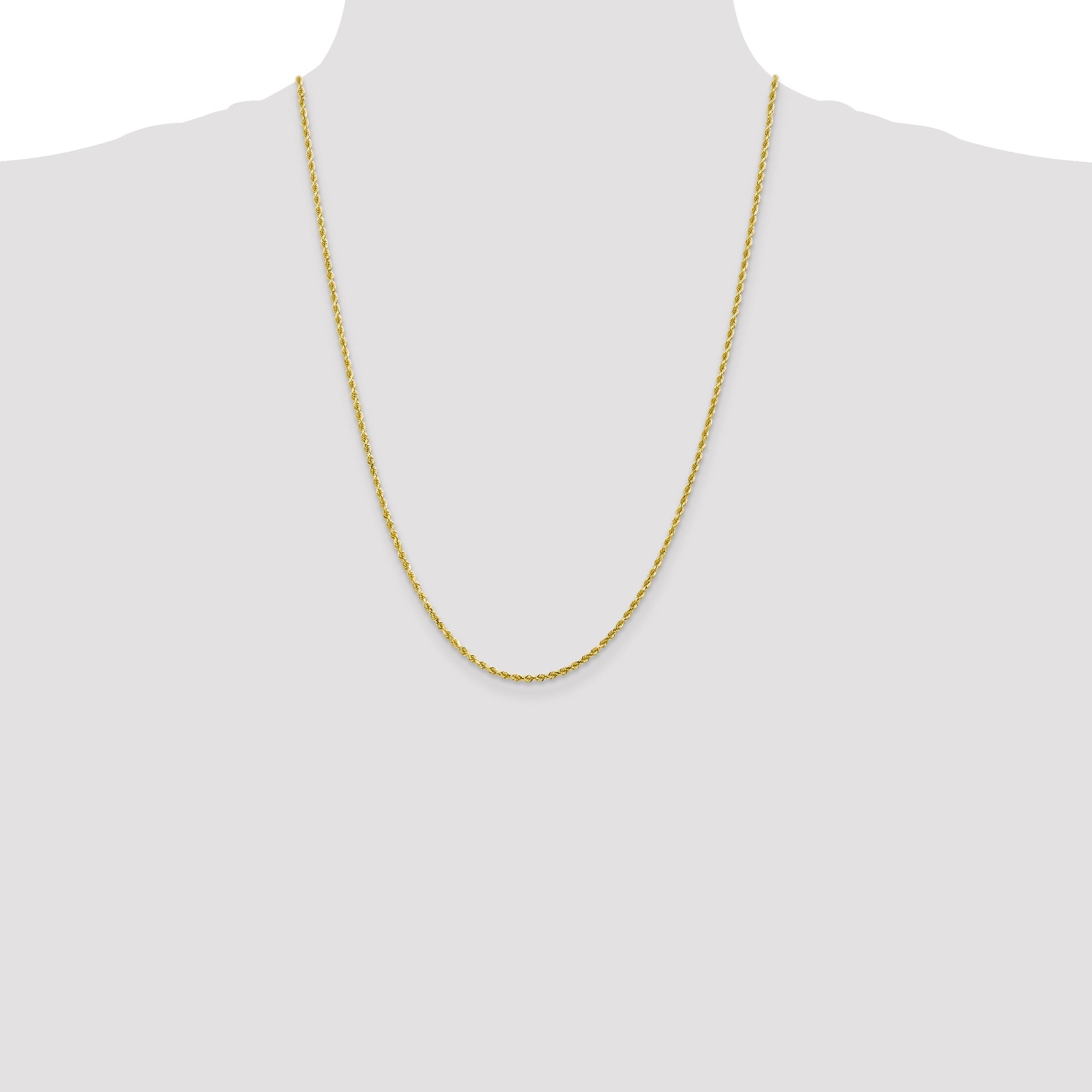 Discover elegance with our 24 Inch 10K 2mm Diamond-Cut Rope Chain, meticulously crafted from pure 10K gold. This polished, solid chain showcases an intricate diamond-cut texture that dazzles in any light. Measuring 24 inches in length and 2 mm in width, its fine rope design offers both durability and sophistication. The lobster clasp ensures a secure fit, while the handmade craftsmanship highlights its unique charm. Elevate any outfit effortlessly with the 24 Inch 10K 2mm Diamond-Cut Rope Chain, a timeless piece fit for any occasion.
