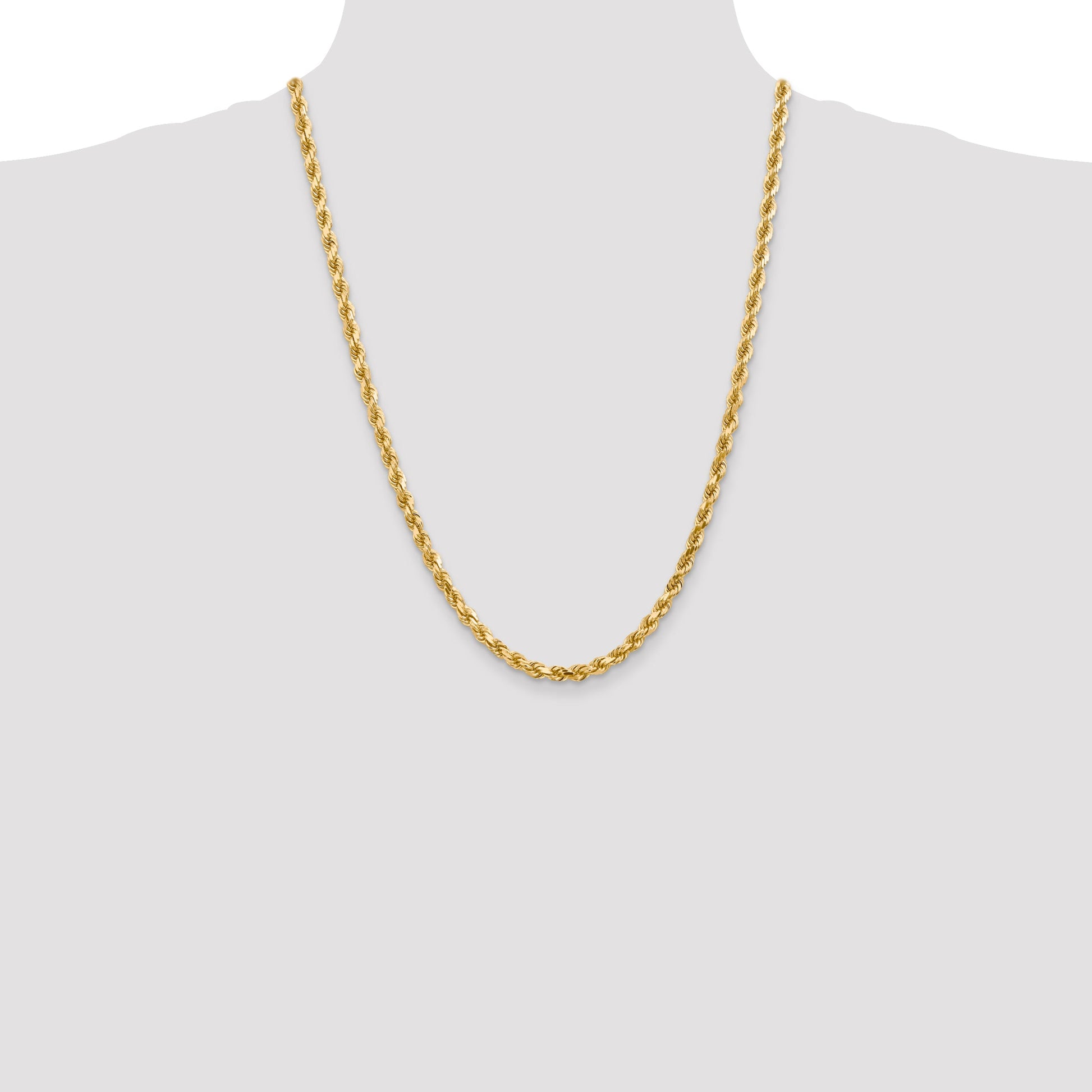 Discover the elegance of our 24 Inch 10K 4.5mm Diamond-Cut Rope Chain. Crafted in 10K yellow gold, this polished chain gleams with a diamond-cut texture, adding a touch of sophistication. The 4.5mm width makes it both sturdy and stylish, perfect for any occasion. With a lobster clasp, it's easy to wear and secure. This chain is a solid piece, ensuring lasting quality and durability. Elevate your collection with the timeless charm of the 24 Inch 10K 4.5mm Diamond-Cut Rope Chain.