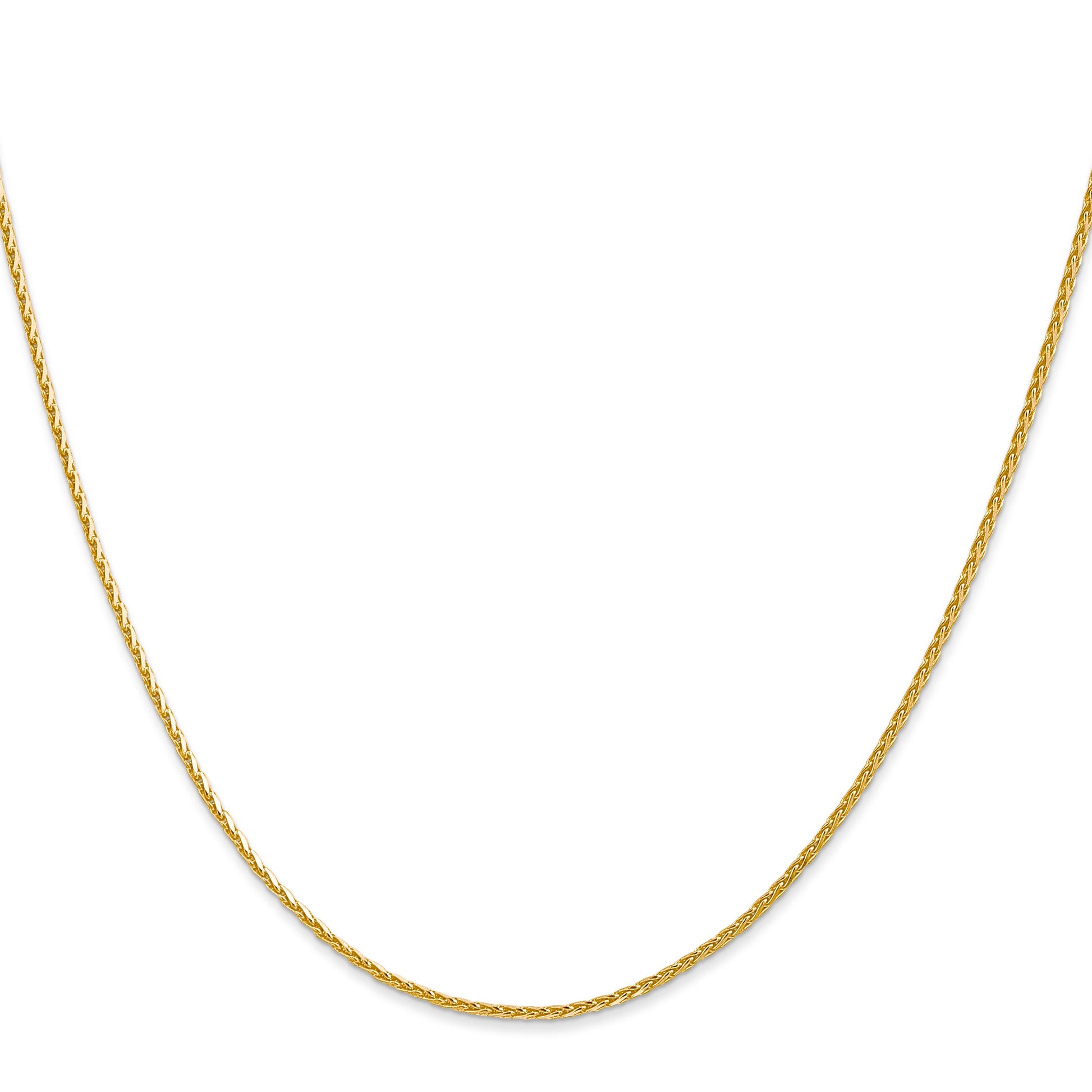 Introducing the 24 Inch 14K 1.3mm Diamond-Cut Wheat Chain, crafted from premium 14K yellow gold. This elegant necklace features a polished finish, adding a touch of luxury to any outfit. The 1.3mm width offers a perfect balance between subtlety and presence, making it suitable for both everyday wear and special occasions. Its durable wheat chain design ensures longevity, while the secure lobster clasp provides easy fastening. The chain undergoes an intricate diamond-cut process, enhancing its sparkle and shine. Treat yourself or a loved one with the timeless sophistication of the 24 Inch 14K 1.3mm Diamond-Cut Wheat Chain.