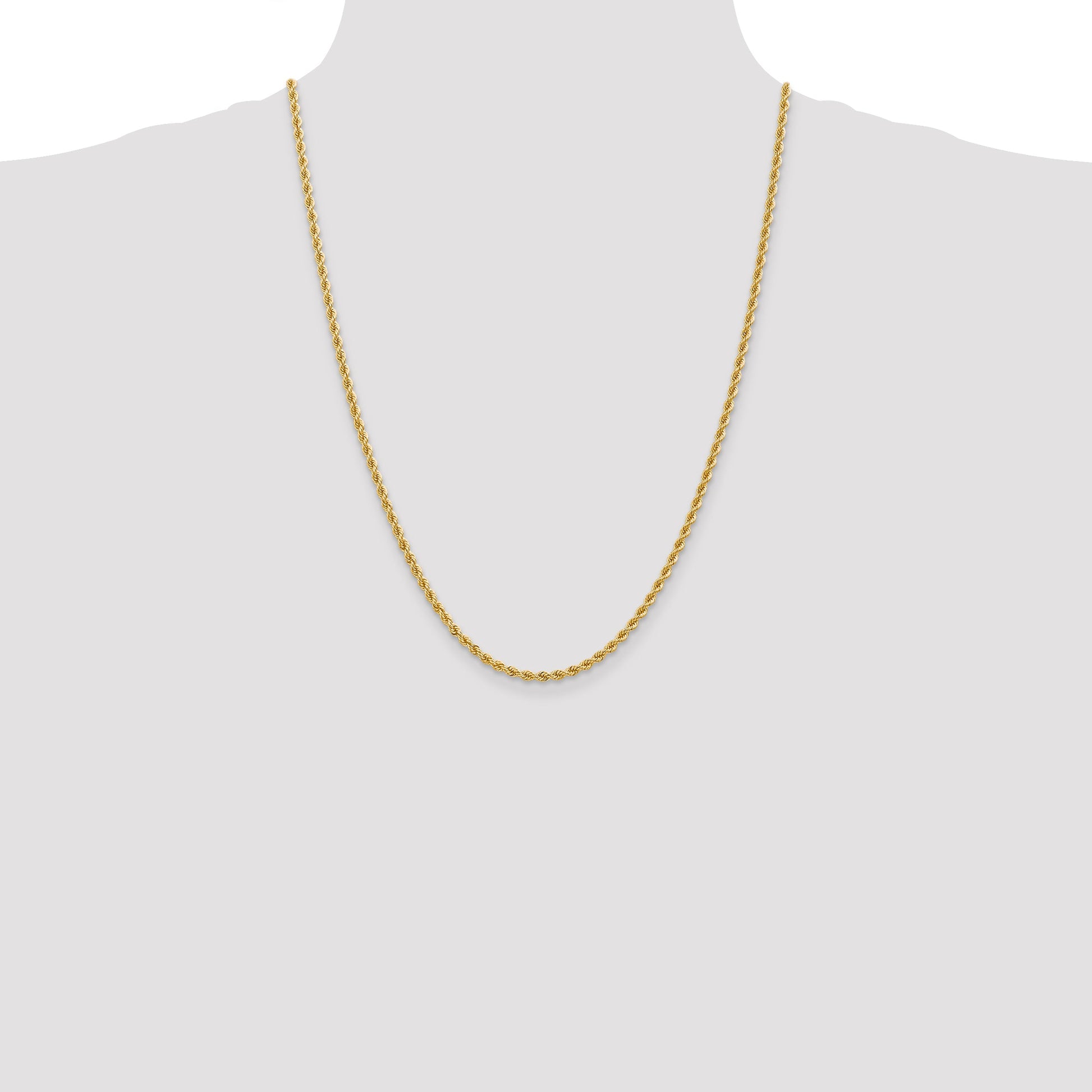 The 24 Inch 14K 2.75mm Solid Regular Rope Chain exhibits timeless elegance. Crafted from 14K polished gold, this sturdy chain features a classic rope design. Its 24-inch length and 2.75mm width make it perfect for daily wear. The solid construction ensures durability, while the lobster clasp guarantees a secure fit. This exquisite necklace promises a lifetime of satisfaction. Wear the 24 Inch 14K 2.75mm Solid Regular Rope Chain to add a touch of sophistication to any outfit.