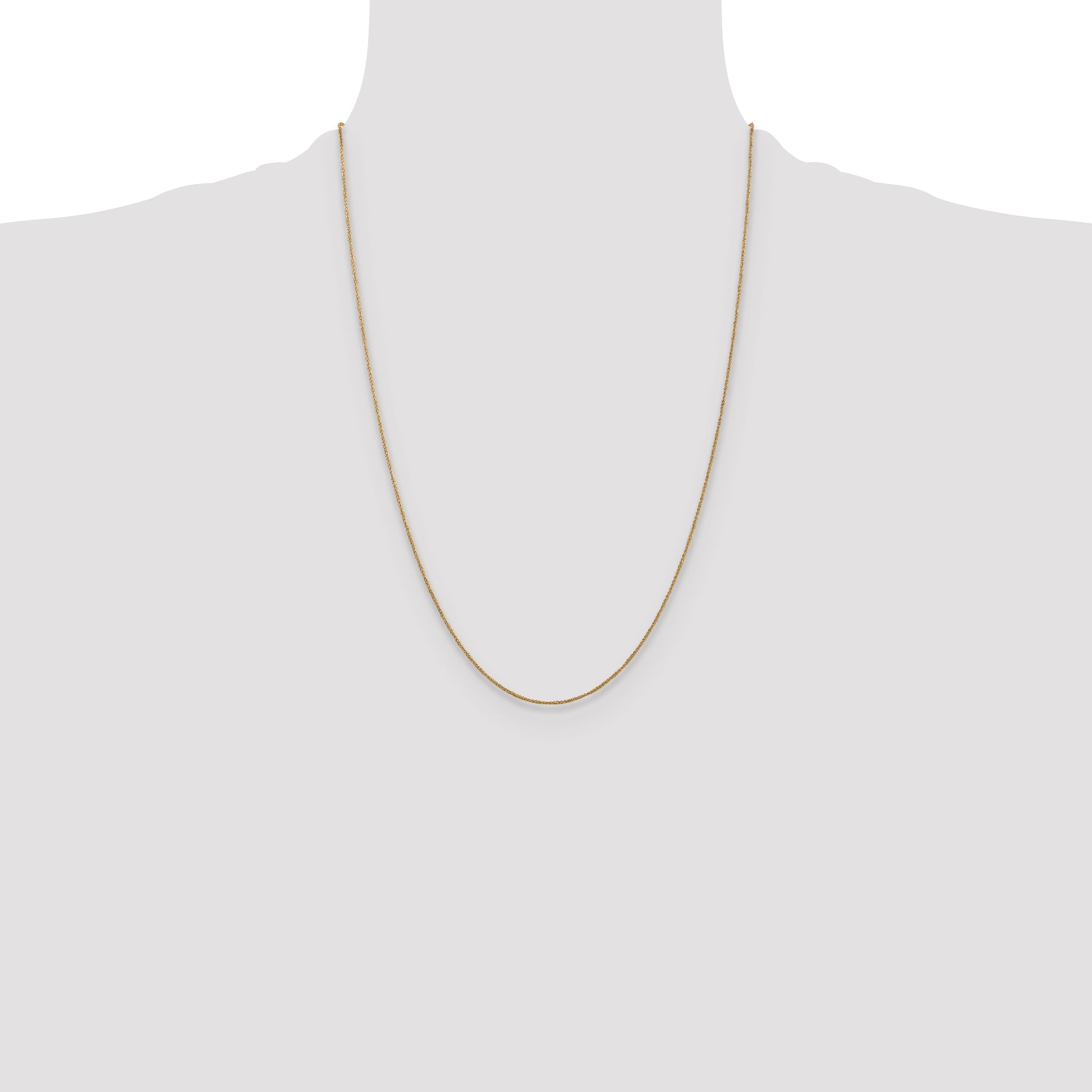 Introducing the elegant 24 Inch 14K .70mm Ropa Chain, a timeless treasure in fine jewelry. Crafted from 14K polished yellow gold, this chain measures 24 inches in length, making it a versatile piece for any occasion. Its sleek 0.7 mm width adds a subtle charm that gracefully complements any style. The solid construction ensures durability, and the spring ring clasp offers secure wear. Perfect for all genders, it's a fine addition to any jewelry collection. Make the 24 Inch 14K .70mm Ropa Chain your go-to choice for understated elegance.