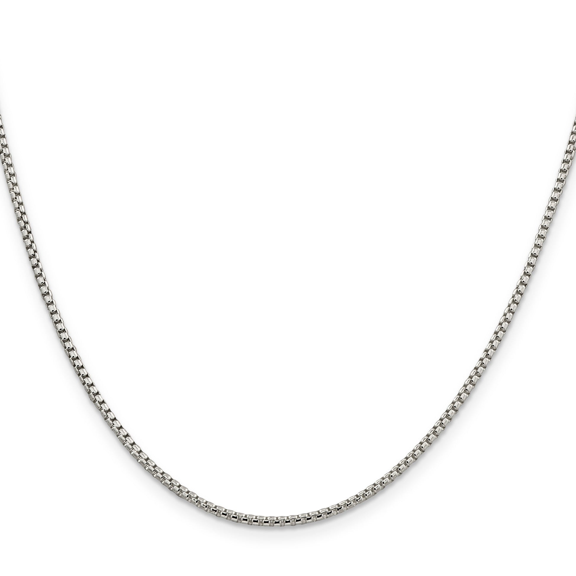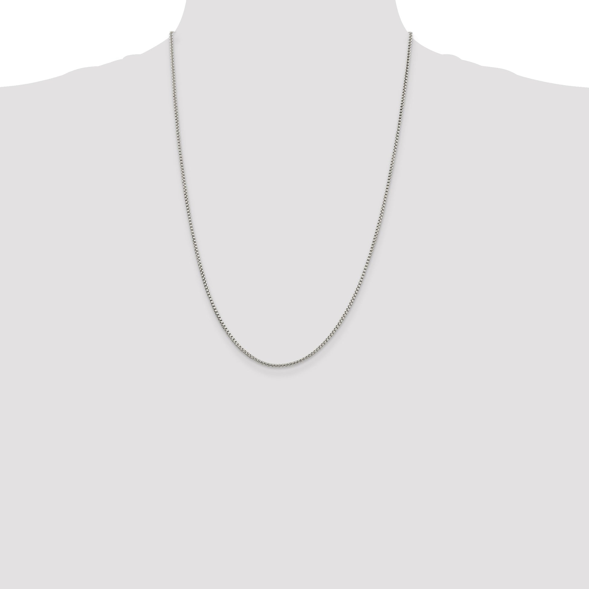 The 24 Inch Sterling Silver 1.75mm Round Box Chain is a sleek addition to any jewelry collection. This chain, crafted from 925 Sterling Silver, shines with a polished finish. The 24-inch length and 1.75 mm width offer a perfect balance, making it both eye-catching and versatile. Its reliable lobster clasp ensures a secure fit, while an anti-tarnish coating keeps it looking fresh. Whether worn alone or paired with your favorite pendant, this solid, casted round box chain is an elegant piece for women. Add the 24 Inch Sterling Silver 1.75mm Round Box Chain to your style for pure class.