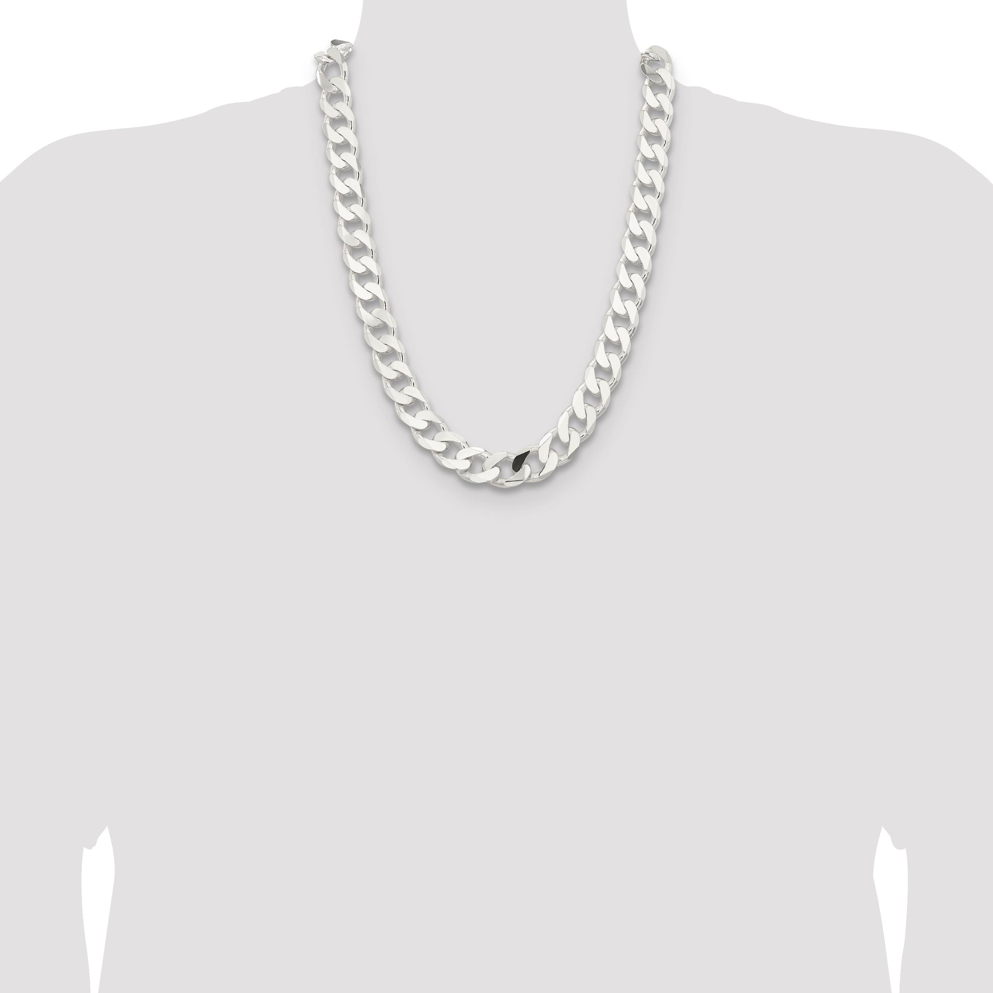 The 24 Inch Sterling Silver 14.5mm Curb Chain stands out with its bold and robust design. Made from high-quality 925 sterling silver, it offers a polished finish that catches the light just right. Its 24-inch length gives it significant presence, making it perfect for any man looking to make a statement. The sturdy lobster clasp ensures security while wearing. With a wide 15mm curb design, this chain promises durability and style, featuring an anti-tarnish coating for long-lasting shine. Elevate your accessory game with this striking Sterling Silver Curb Chain.