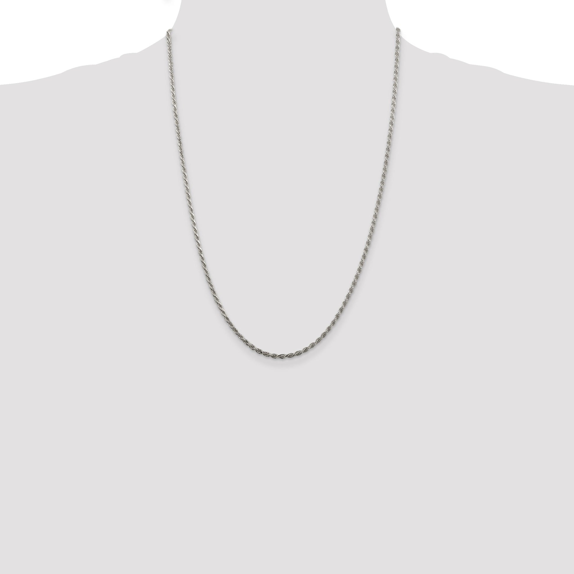 Introducing the 24 Inch Sterling Silver 2.25mm Diamond-Cut Rope Chain, a dazzling accessory for any occasion. Crafted from 925 sterling silver, this chain shines with a polished finish and a diamond-cut texture that catches every glimmer of light. The 24-inch length drapes elegantly around the neckline, while its 2.25mm width adds a touch of subtle sophistication. The chain’s lobster clasp ensures a secure fit, and its anti-tarnish coating keeps it looking pristine. The solid rope design offers a classic style that complements any outfit. Elevate your jewelry collection with the Sterling Silver 2.25mm Diamond-Cut Rope Chain.