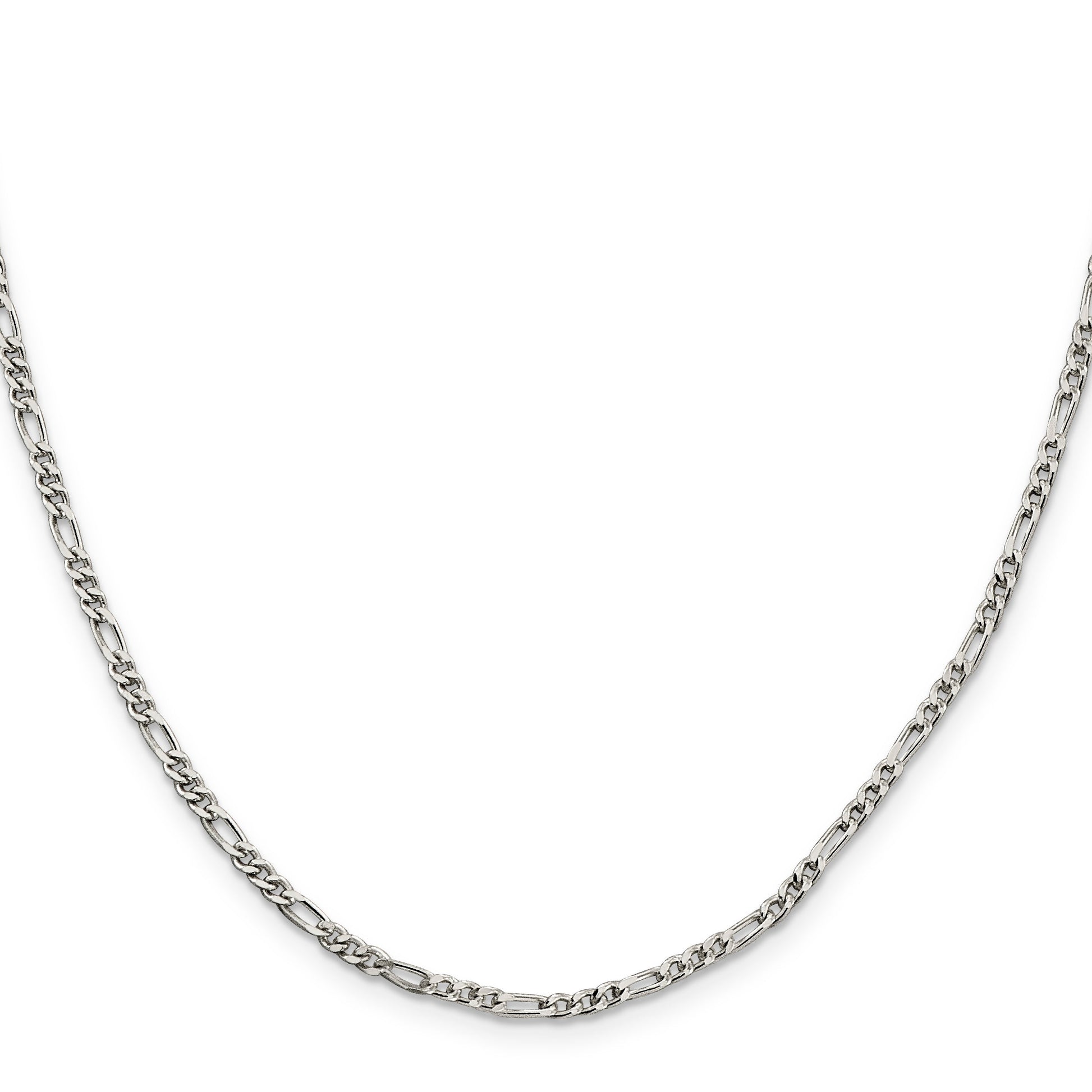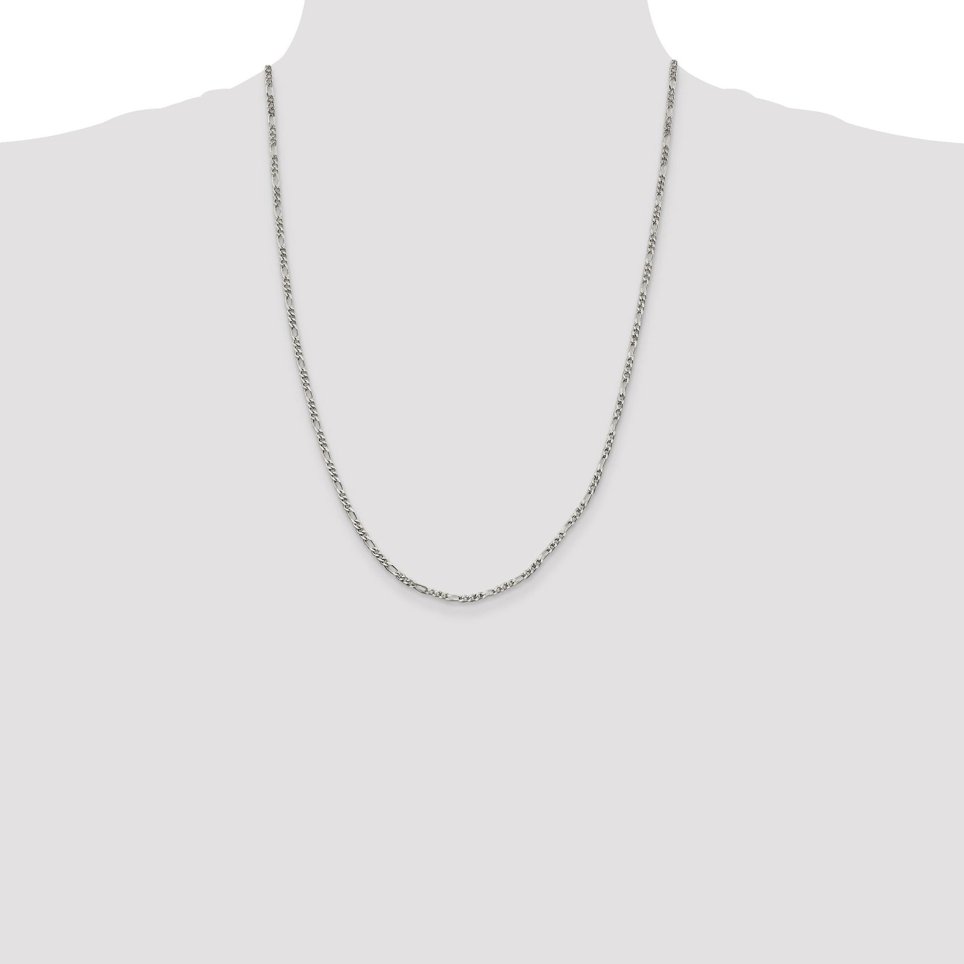 Discover timeless elegance with our 24 Inch Sterling Silver Figaro Chain. Crafted from 925 sterling silver, this polished beauty shines with a bright white hue. The chain showcases a classic Figaro design, offering a delicate 2.5 mm width for subtle sophistication. Equipped with a sturdy lobster clasp, it's perfect for worry-free wear. The solid construction ensures lasting durability while maintaining an elegant fluidity of movement. Ideal for women who appreciate effortless style, this chic necklace is sold per piece. Elevate any look with the 24 Inch Sterling Silver Figaro Chain as a standout accessory.