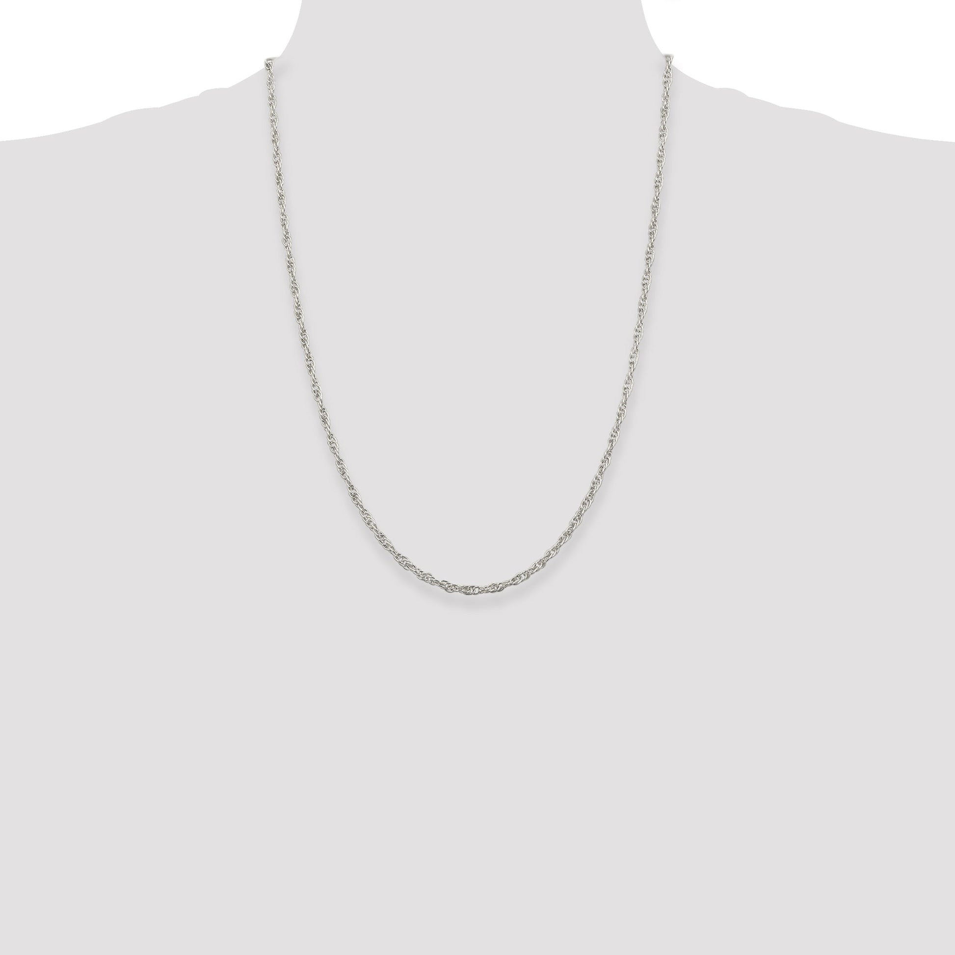 The 24 Inch Sterling Silver 2.75mm Loose Rope Chain stands out with its fine quality and elegant design. Made from sterling silver with a 925 hallmark, this necklace sparkles with a polished finish. The 24-inch length and solid rope chain design ensures it holds its shape while adding sophistication to any outfit. A secure lobster clasp makes it easy to wear, providing peace of mind for everyday use. The 2.75 mm width offers a classic, yet eye-catching allure. Perfect for any woman, the Sterling Silver 2.75mm Loose Rope Chain complements any pendant beautifully.