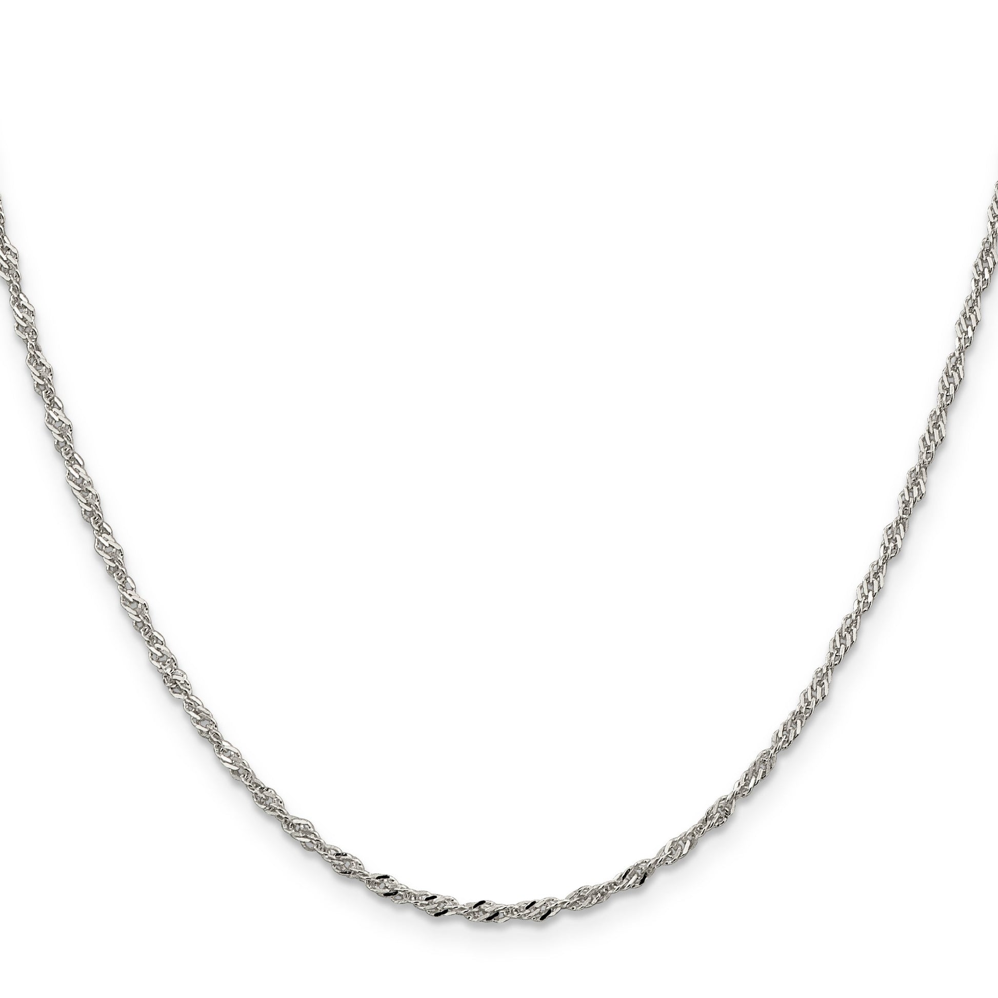 The 24-inch Sterling Silver 2mm Singapore Chain is a beauty to behold. Crafted from genuine 925 sterling silver, it gleams with a polished finish. This chain, with its elegant twisted design, adds a sophisticated touch to any jewelry collection. The 24-inch length is perfect for layering or wearing solo. Stringently designed for durability, it features a secure lobster clasp. This women's necklace, in striking white color, is perfect for enhancing any attire. The 2mm width captures simplicity and elegance. The 24 Inch Sterling Silver Singapore Chain is your ticket to a timeless, classy look.