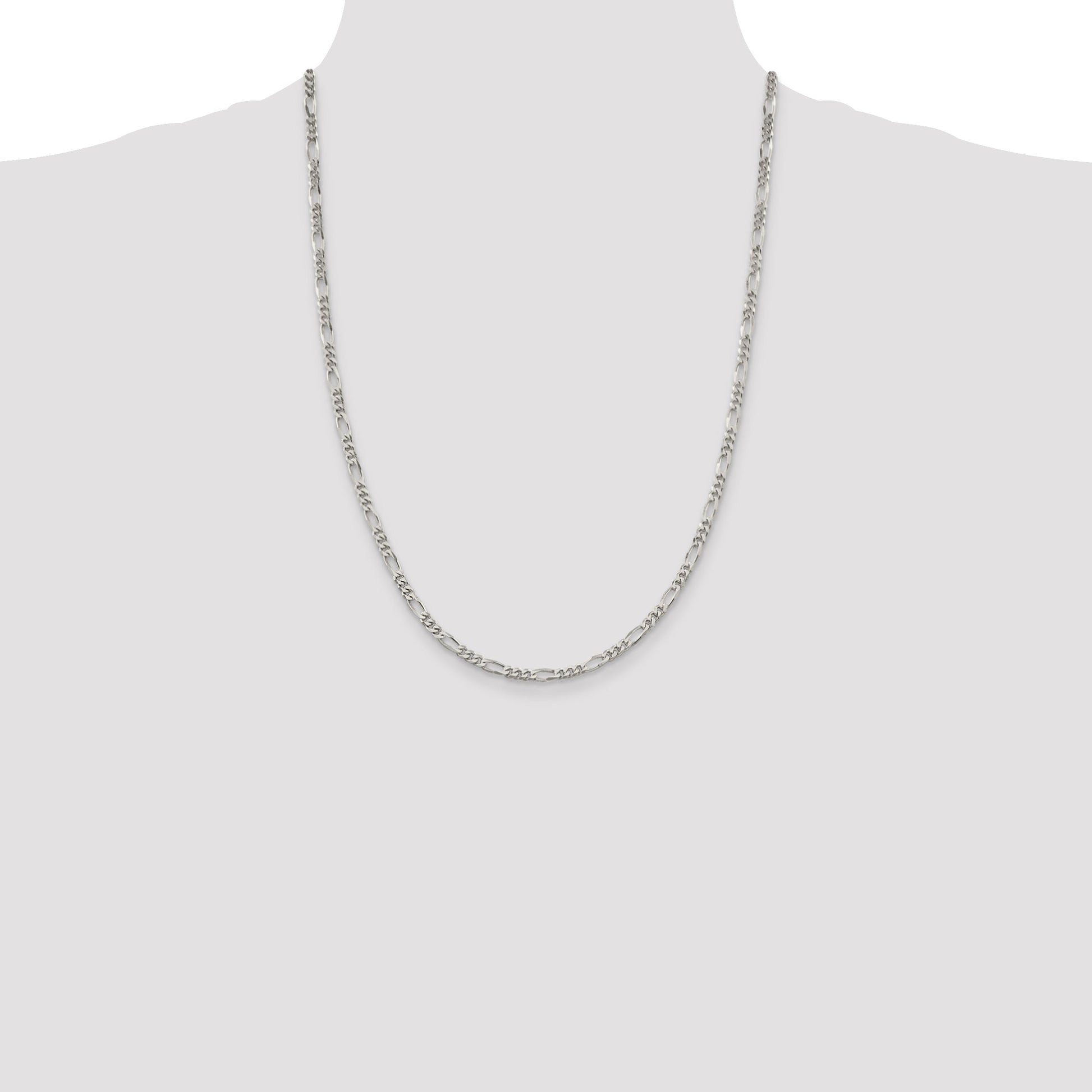 The 24 Inch Sterling Silver 3.5mm Figaro Chain is a timeless piece of fine jewelry that exudes elegance and sophistication. Crafted from 925 sterling silver, its polished finish captures the light effortlessly, adding a touch of shine to any outfit. This 24-inch long chain features a classic Figaro design, known for its distinctive pattern of three small oval links followed by one elongated link. With a 3.5mm width, it offers an ideal balance of subtlety and presence. Equipped with a secure lobster clasp, this solid necklace is machine-made for durability and perfect for everyday wear, enhancing any woman's style.