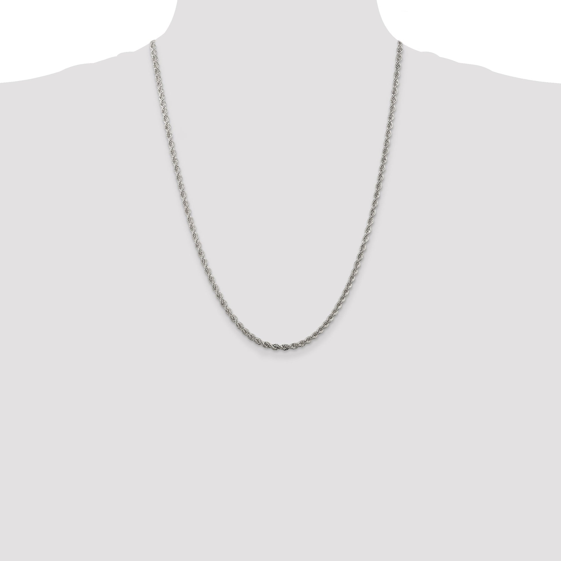 The 24-Inch Sterling Silver 3mm Solid Rope Chain adds elegance to any jewelry collection. Made from high-quality 925 sterling silver, this chain boasts a polished finish that shines brightly. Its solid, 3mm rope design ensures durability, while an anti-tarnish coating keeps it looking new. The lobster clasp offers secure fastening, making it perfect for everyday wear. Casted with precision, this necklace suits women's fashion effortlessly, enhancing any look with its subtle sophistication. The 24-Inch Sterling Silver 3mm Solid Rope Chain is a must-have for those who appreciate timeless style and quality.
