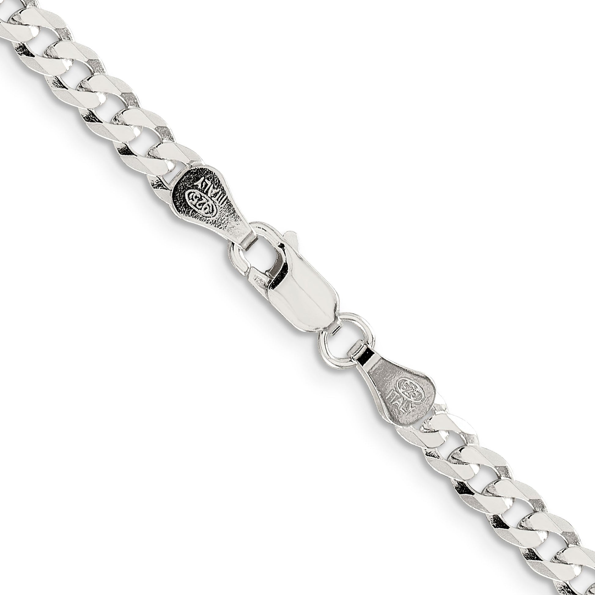 Meet timeless elegance with the 24 Inch Sterling Silver 4.7mm Flat Curb Chain. This stunning necklace, crafted with 925 sterling silver, boasts a polished finish that gleams with sophistication. Its anti-tarnish coating ensures lasting shine, while the solid, casted construction guarantees durability. The flat 4.7mm wide curb chain design is both modern and versatile, perfect for daily wear or special occasions. Fastened securely with a lobster clasp, it's the perfect stylish addition to any woman's jewelry collection. Elevate your style with this irresistible piece, the 24 Inch Sterling Silver 4.7mm Flat Curb Chain.