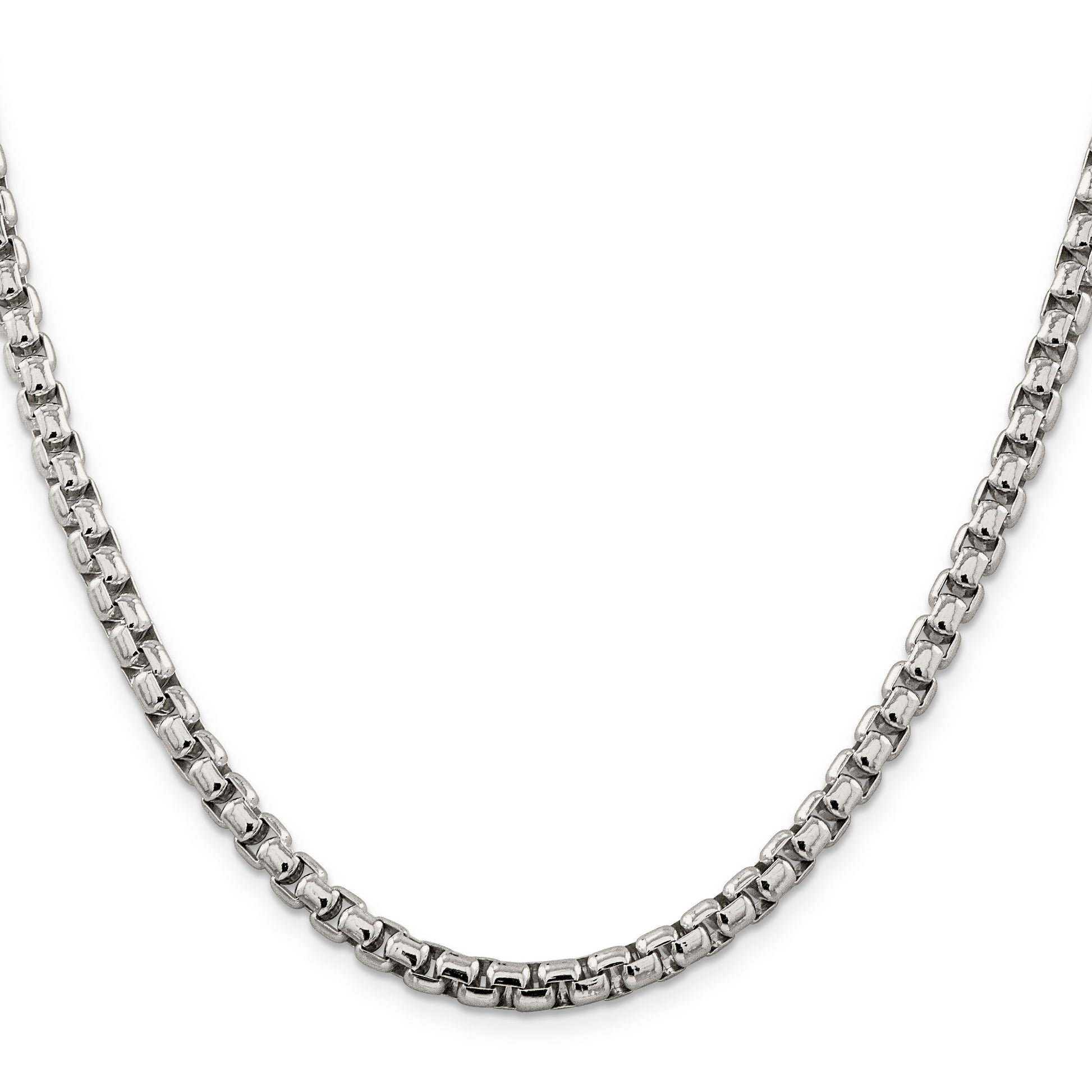 The 24 Inch Sterling Silver 5.2mm Round Box Chain is a stunning piece that adds elegance to any outfit. Crafted from 925 sterling silver, its polished finish gives it a sleek look. The 5.2mm width provides a bold presence, perfect for both men and women. This chain, measuring 24 inches in length, features a solid, durable structure, and the anti-tarnish coating ensures lasting shine. The lobster clasp offers secure closure for a worry-free wear. This timeless 24 Inch Sterling Silver 5.2mm Round Box Chain is a must-have for your jewelry collection.