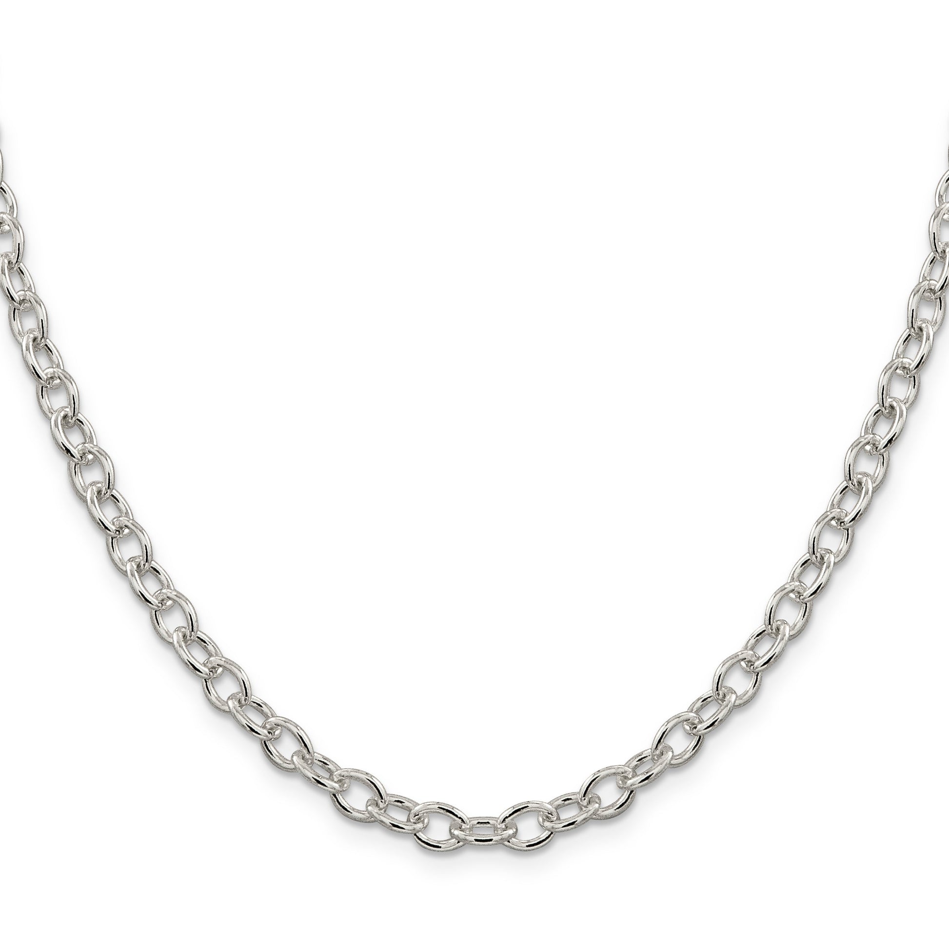 Introducing the 24 Inch Sterling Silver 5.75mm Oval Cable Chain, a timeless addition to your jewelry collection. Crafted from high-quality 925 sterling silver, this polished necklace dazzles with its solid construction. The oval cable chain measures a sleek 5.75mm in width, offering a balance of elegance and durability. Its 24-inch length allows it to drape gracefully, suitable for daily wear or special occasions. Featuring a sturdy lobster clasp, this versatile piece ensures both security and style. Elevate your accessory game with the 24 Inch Sterling Silver 5.75mm Oval Cable Chain.