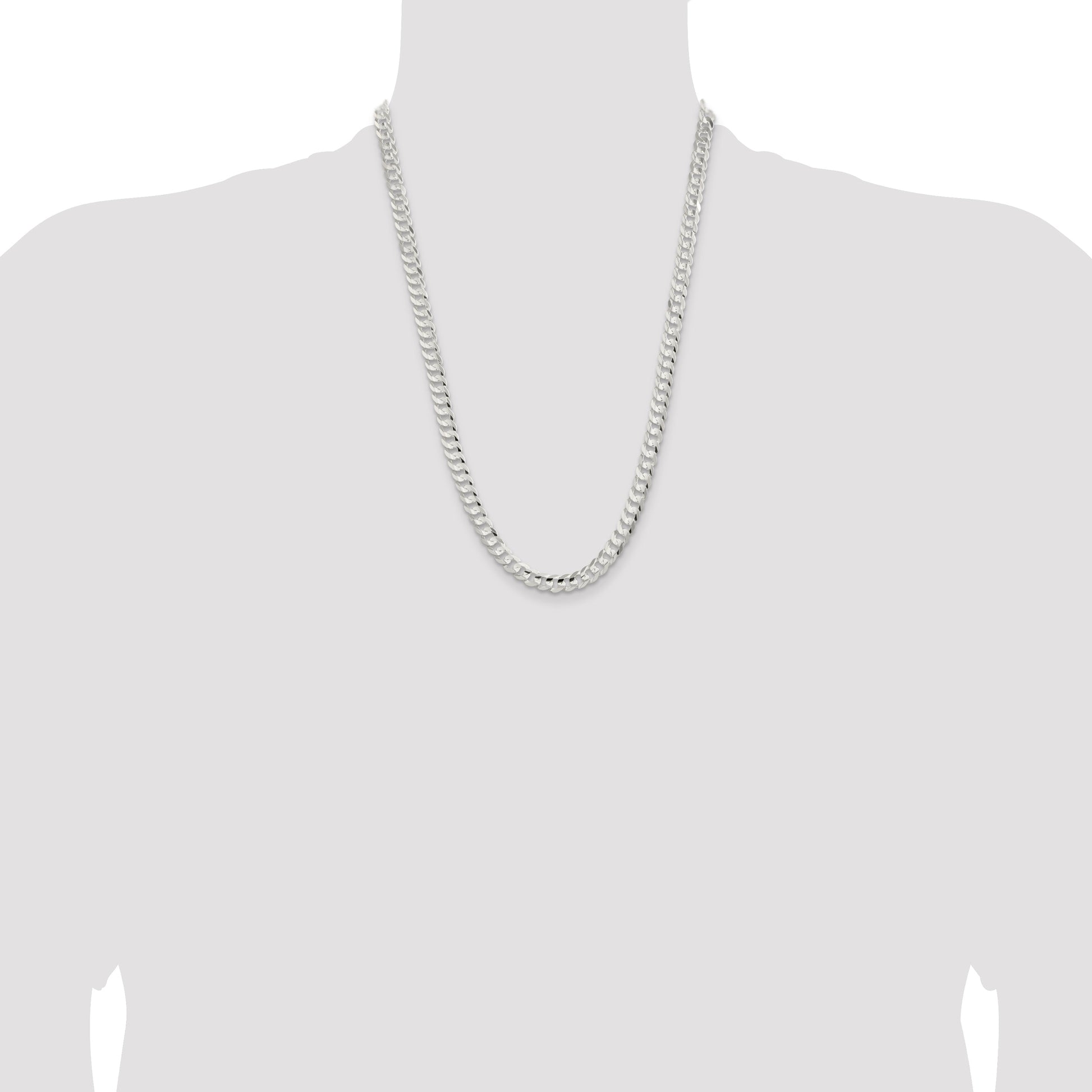 The 24 Inch Sterling Silver 6.75mm Concave Beveled Curb Chain is a stunning choice for those who appreciate timeless elegance. Crafted from polished sterling silver with a purity of 925, this necklace promises lasting shine with its anti-tarnish coating. At a length of 24 inches, it sits comfortably around the neck, showcasing a distinct 6.75mm curb chain design. The beveled edges ensure a refined look, while the sturdy lobster clasp offers secure wear. Ideal for both men and women, the 24 Inch Sterling Silver 6.75mm Concave Beveled Curb Chain makes a striking addition to any jewelry collection.